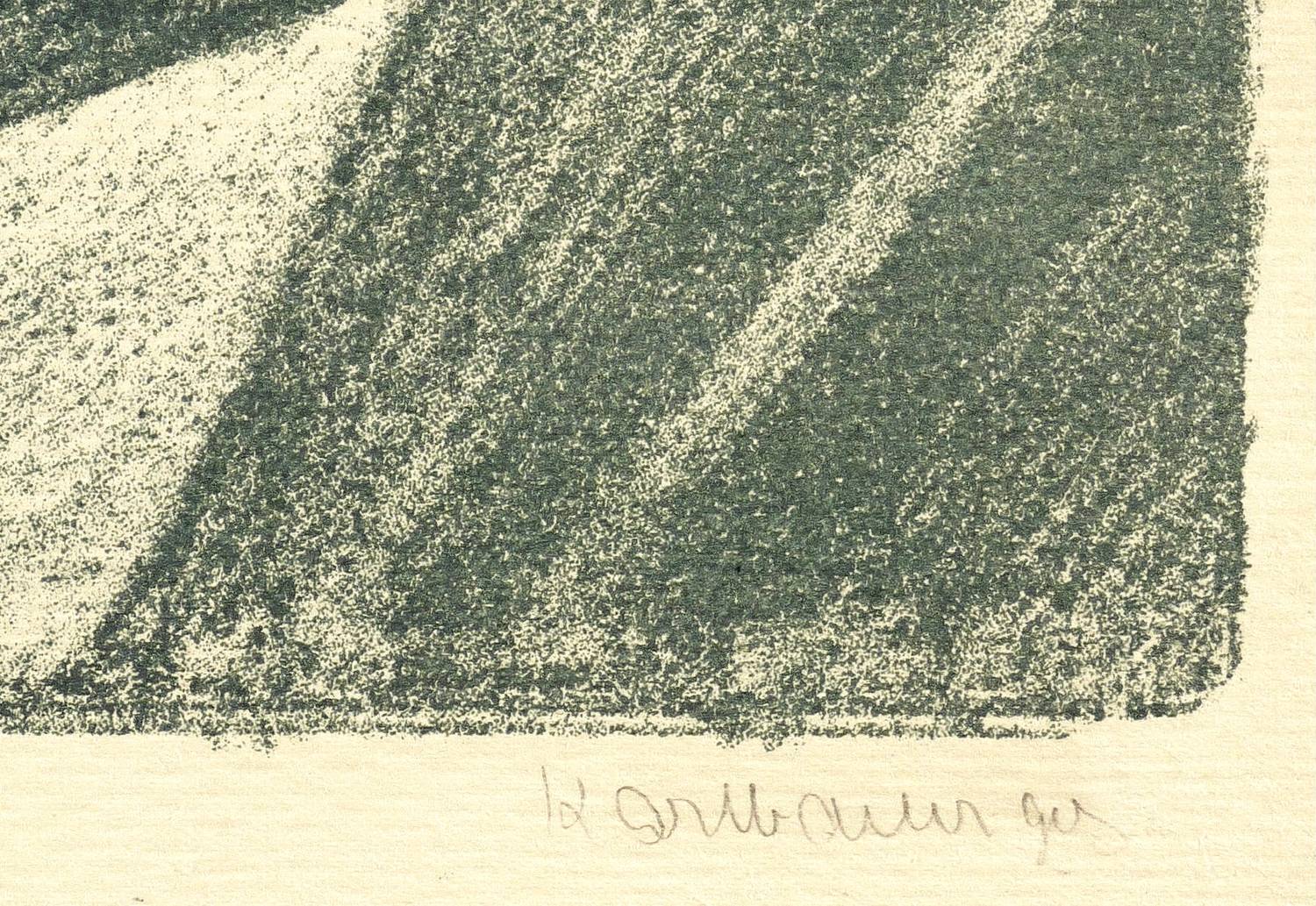 Um 1905. Lithografie / Kreidelithografie, partiell geschabt, in sattem Blaugrün, auf Kupferdruckbütten. – Originale Künstlergrafik, von Karl Bauer. – 49,3 x 44,2 cm (Darstellung / Druckbild), 57,5 x 47,5 cm (Blatt).