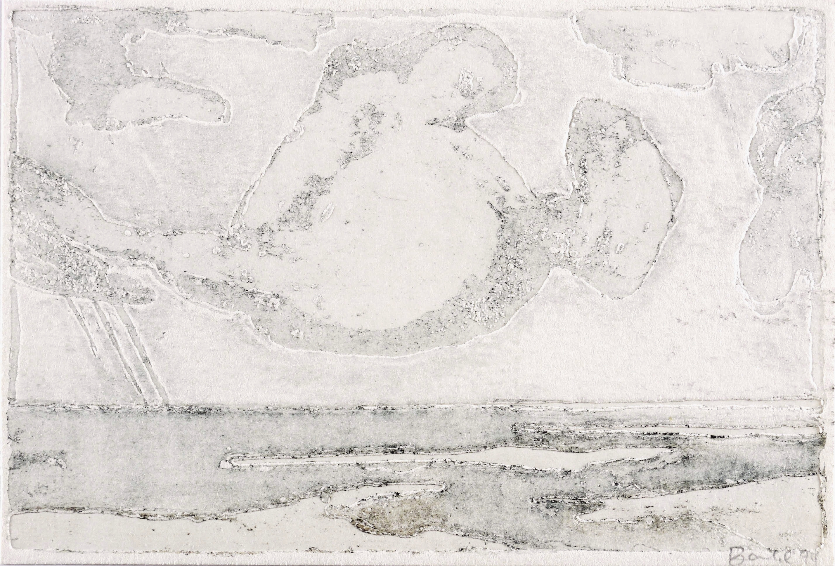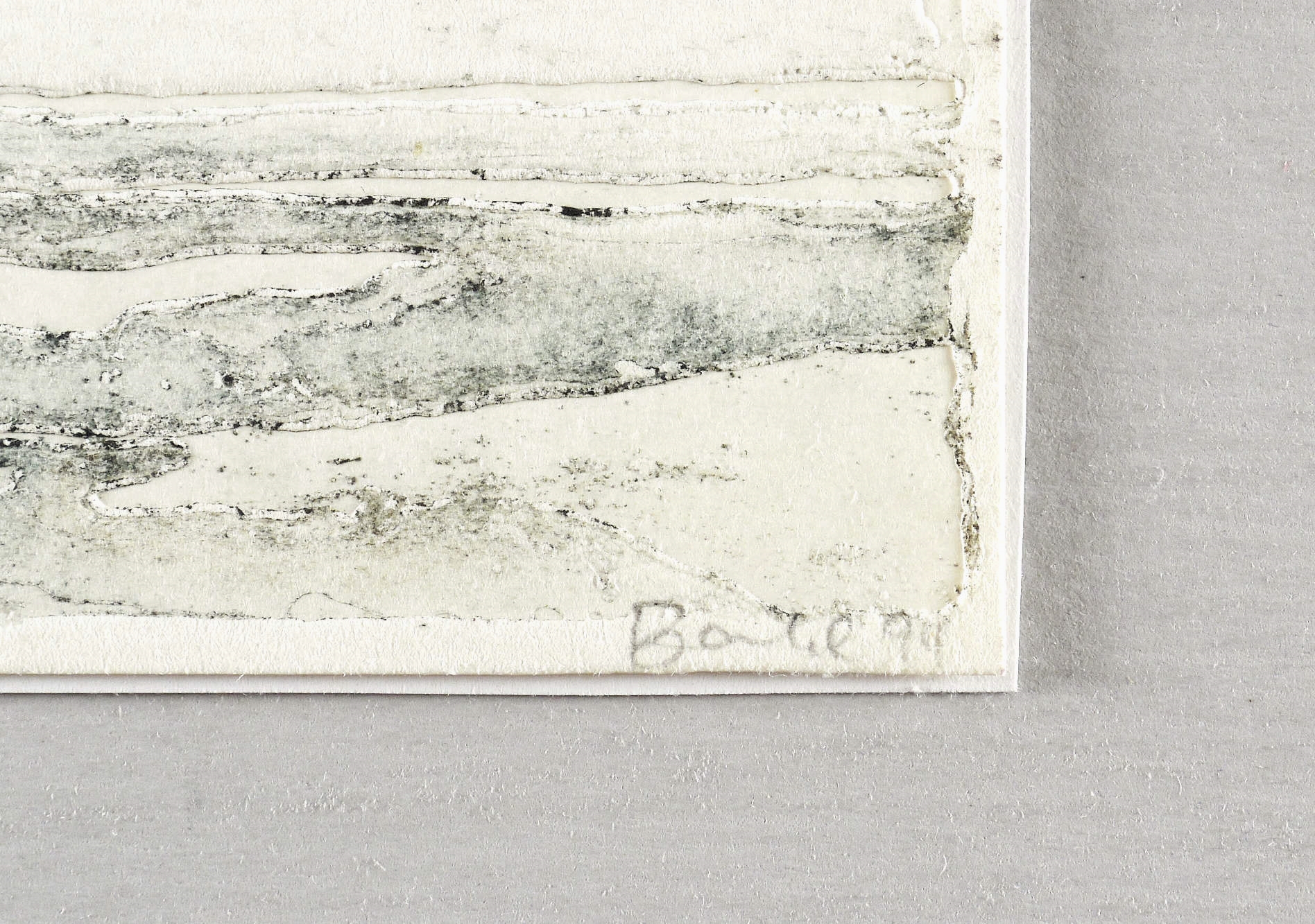 1994. Farbradierung / Aquatinta, in Hellblau & Grau, auf Velinkarton. – Originale Künstlergrafik, von Hans-Dieter Bartel. – 9,8 x 14,7 cm (Darstellung / Platte), 10,3 x 15,0 cm (Blatt), 10,5 x 15,3 cm (Trägerkarton).