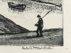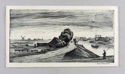 1940-1950. Radierung / Strichätzung & Aquatinta, von 2 Platten, in Schwarz, auf schwerem hellgelbem Bütten. – Originale Künstlergrafik, von Herbert Tucholski. – 14,0 x 27,5 cm (Darstellung / Platte), 16,2 x 29,5 cm (Blatt).