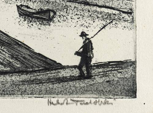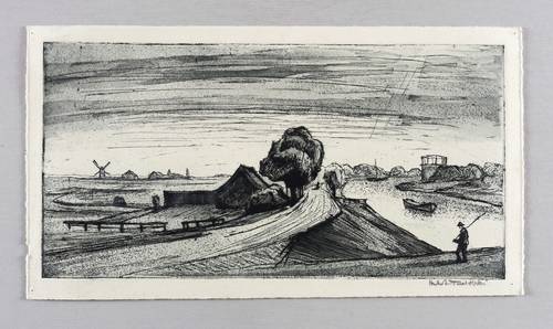 Rechts unten in Bleistift signiert: ″Herbert Tucholski″. – Entspricht in Größe und Komposition (spiegelverkehrt) der Kaltnadelradierung ″Kanal bei Edam″ von 1934, die wiederum auf eine Bleistiftzeichnung von 1928 zurückging (vgl. WVZ Karnahl Nr. 152). – In den Blattecken originale Fixierlöchlein. Sehr guter Zustand.