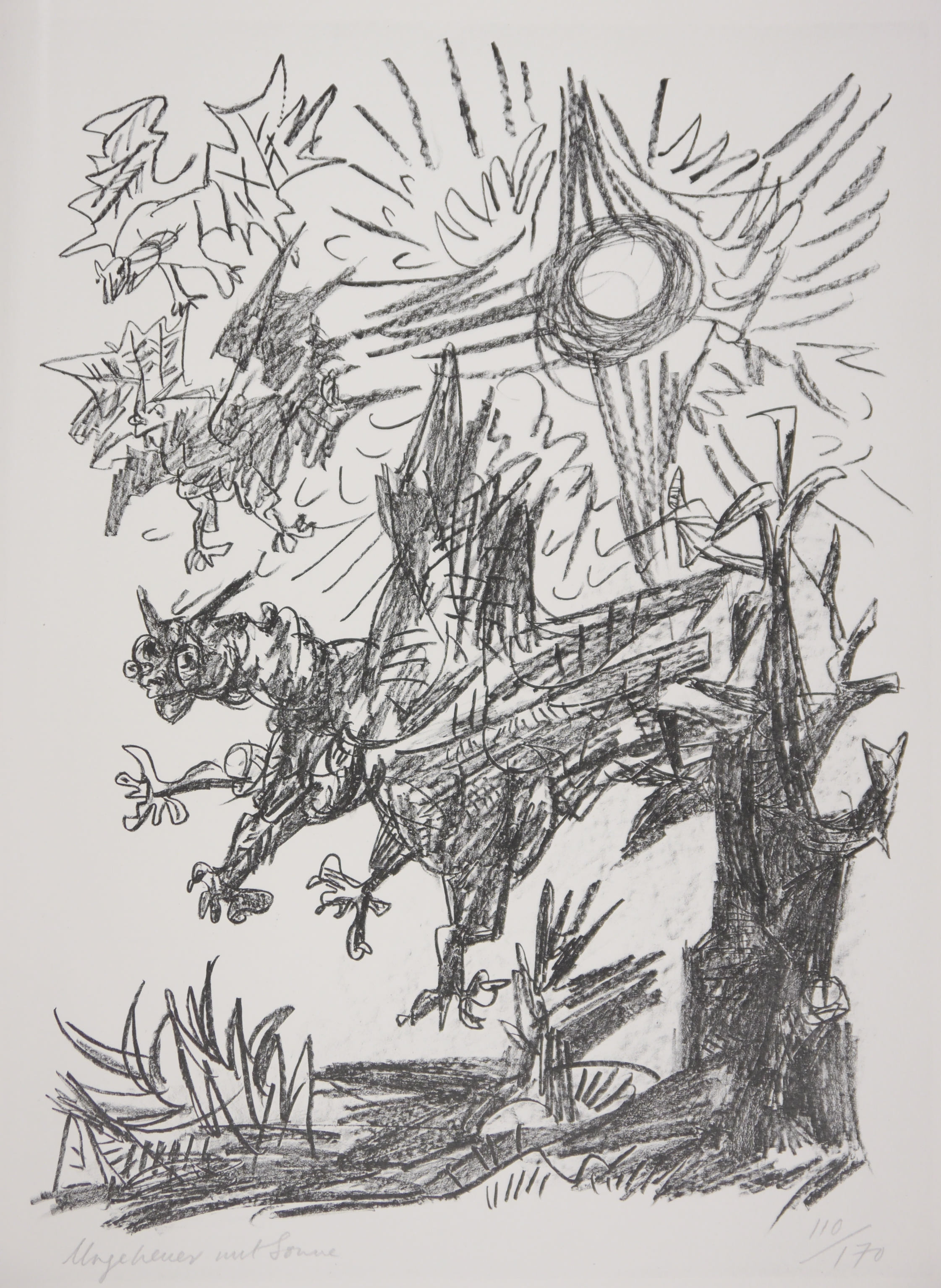 1974. Lithografie / Kreidelithografie, in Schwarz, auf weißlichem Velin. – Originale Künstlergrafik, von René Graetz. – Auflage Exemplar Nr. 110/170. – 44,5 x 33,0 cm (Darstellung), 49 x 36 cm (Blatt).