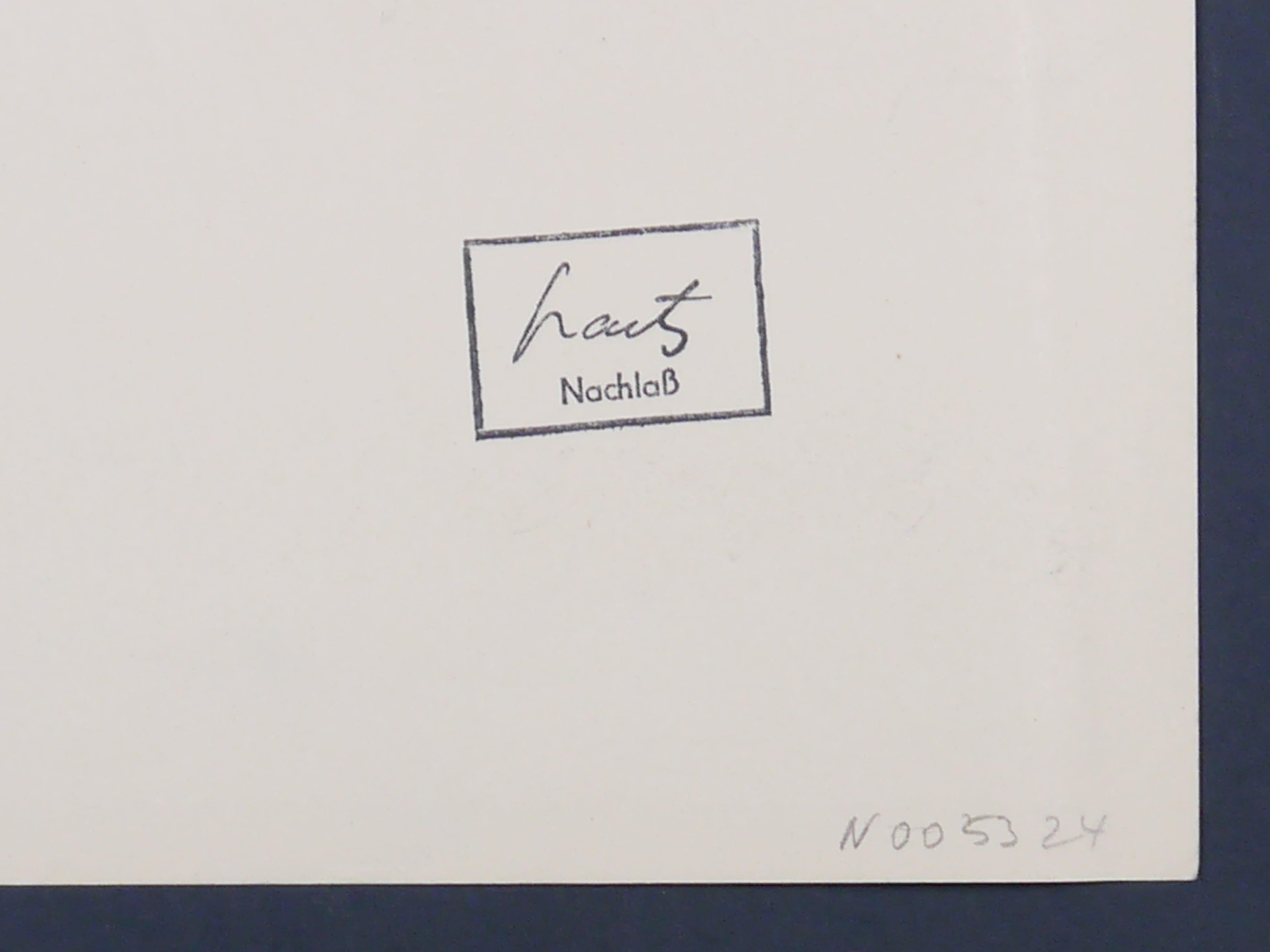 Außerhalb der Darstellung rechts unten in Bleistift signiert und datiert und links betitelt. Verso Nachlaßstempel. – Blattrand mit marginalen Mängeln. Insgesamt sehr gut erhalten.