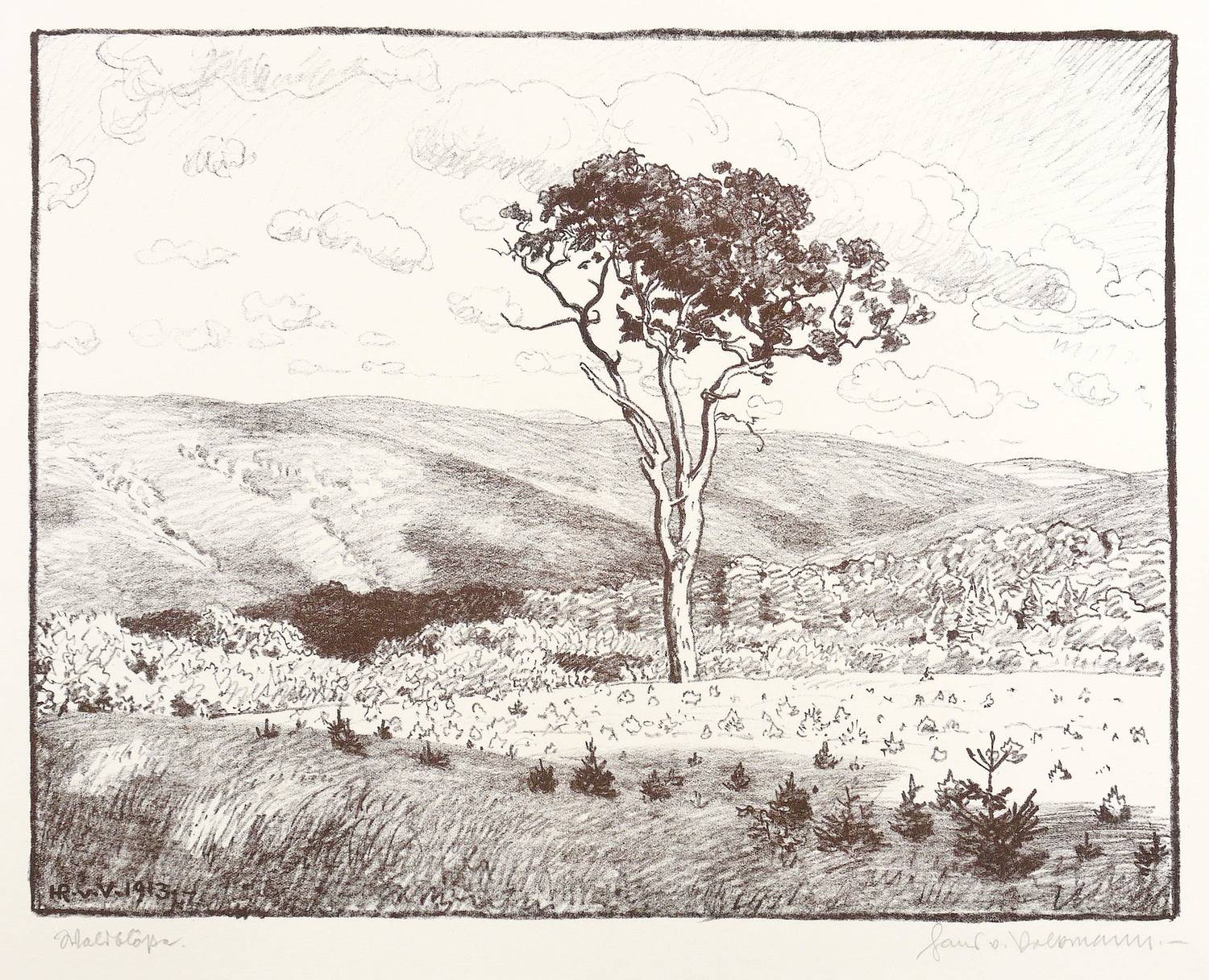 1913. Lithografie / Kreidelithografie, in Schwarz, auf weißlichem Büttenkarton. – Originale Künstlergrafik, von Hans Richard von Volkmann. – 26,3 x 34,2 cm (Darstellung / Stein), 35 x 48 cm (Blatt).