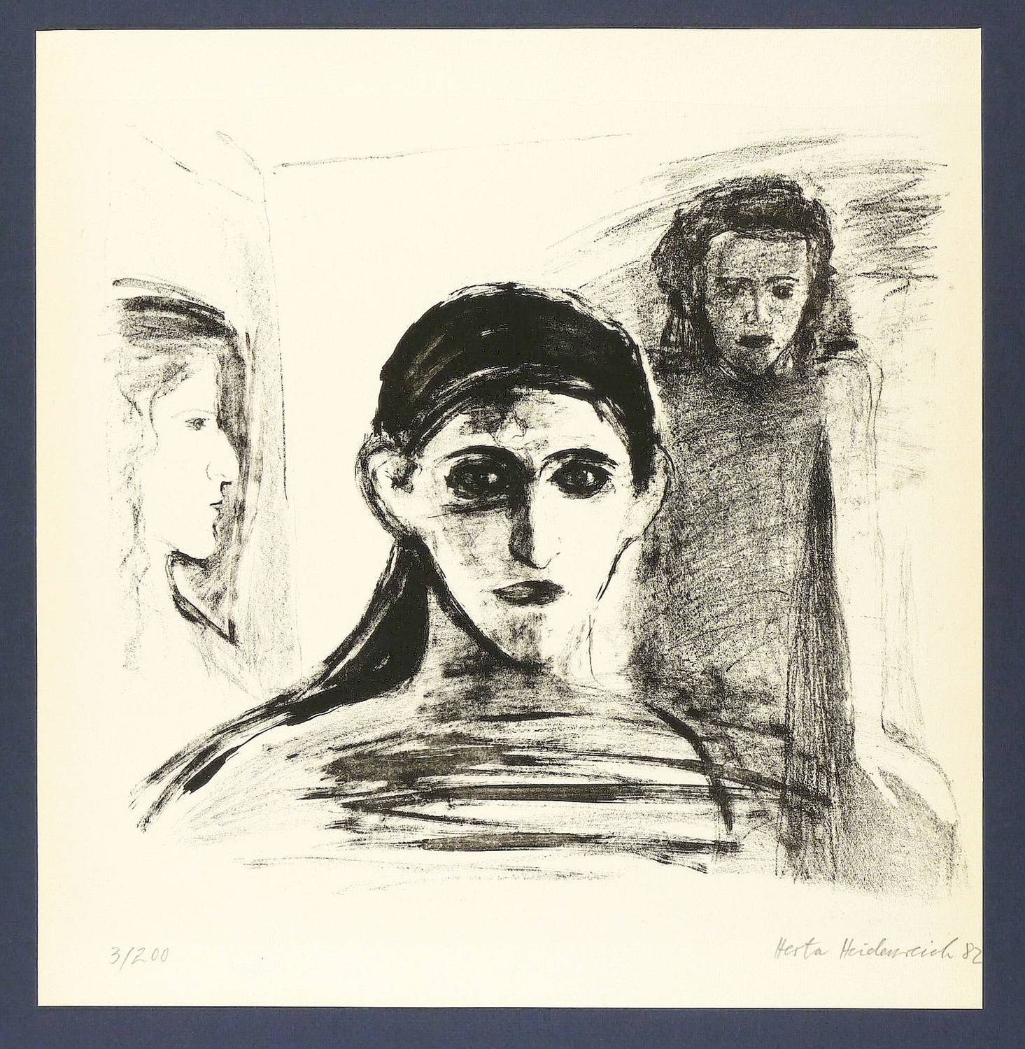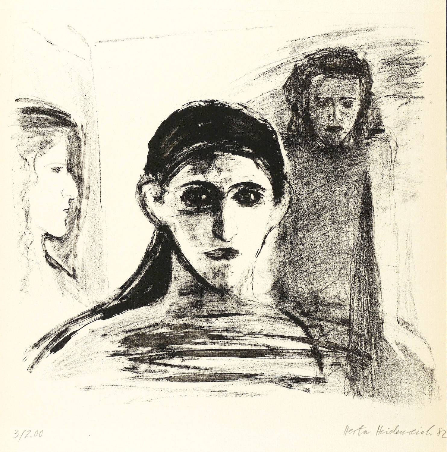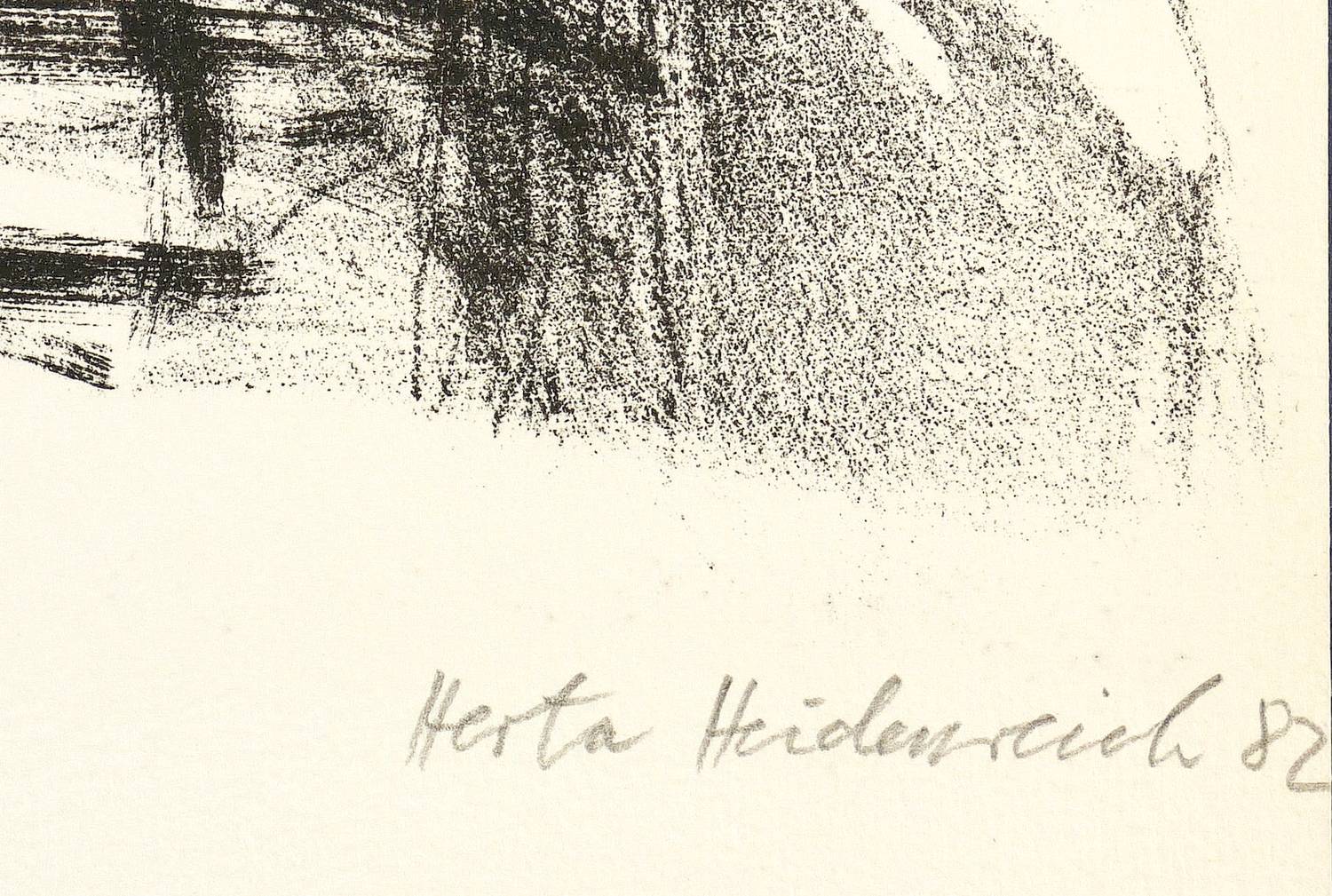 1981. Lithografie / Kreidelithografie, in Schwarz, auf Weißenborn-Bütten. – Originale Künstlergrafik, von Herta Heidenreich. – Auflage Exemplar Nr. 3/200. – 29,0 x 31,2 cm (Darstellung / Druckbild), 36,5 x 35 cm (Blatt).