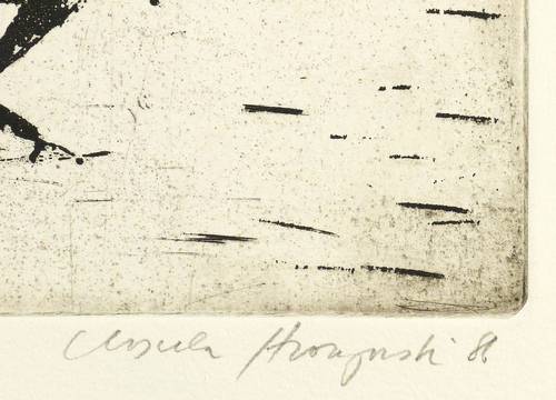 1986. Radierung / Reservage & Aquatinta, in Schwarz, auf hellchamois Hahnemühle. – Originale Künstlergrafik, von Ursula Strozynski. – Auflage Exemplar Nr. 29/110. – 30,4 x 40,5 cm (Darstellung / Platte), 39,5 x 53,5 cm (Blatt).