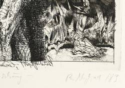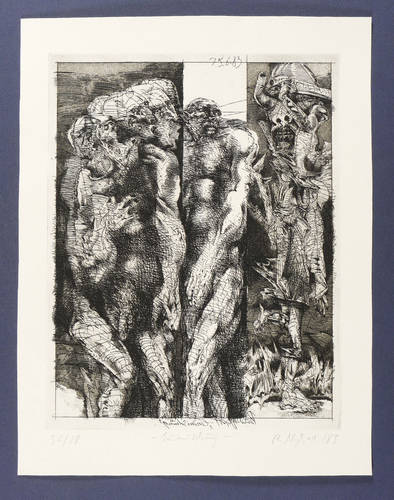 1983. Radierung / Strichätzung & Aquatinta, in Schwarz, auf hellgelbem Papier. – Originale Künstlergrafik, von Frank Ruddigkeit. – Auflage Exemplar Nr. 28/50. – 31,8 x 24,8 cm (Darstellung / Platte), 39 x 30 cm (Blatt).