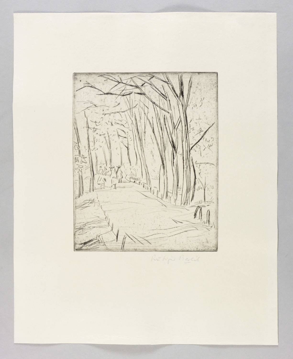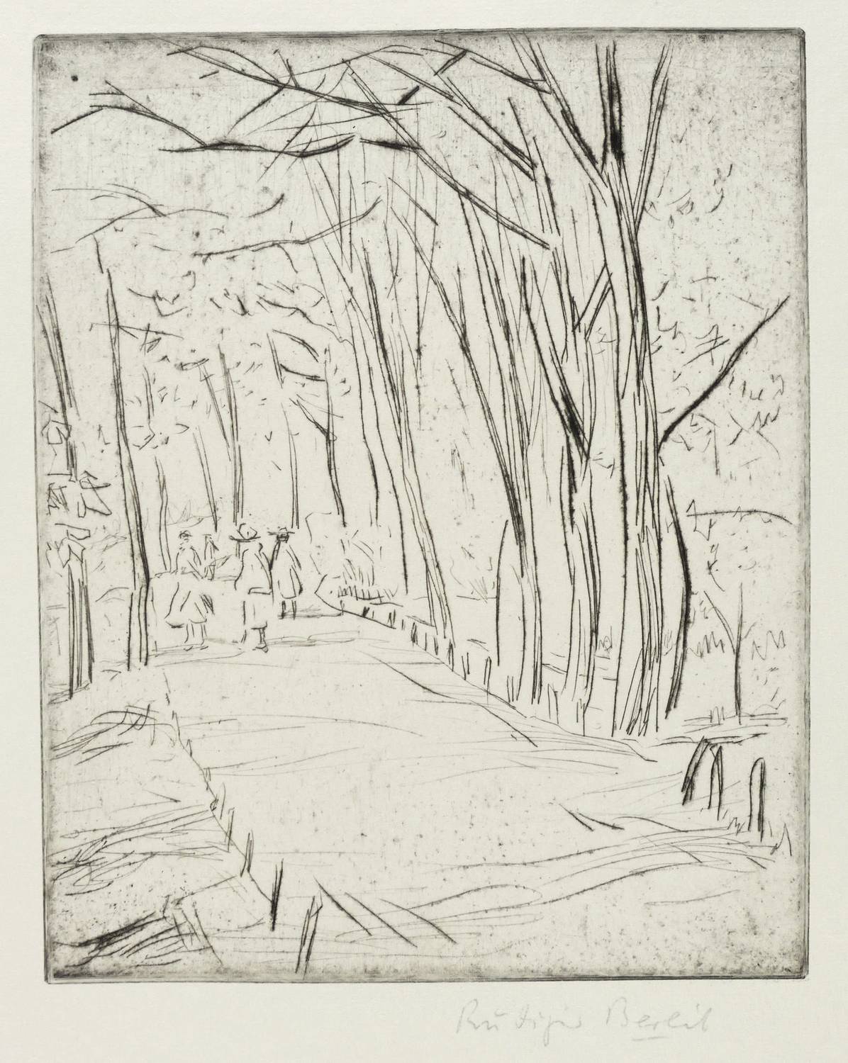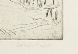 1910-1915. Radierung / Kaltnadel, mit Plattenton, in Schwarz, auf gelbem Van-Gelder-Zonen-Bütten. – Originale Künstlergrafik, von Rüdiger Berlit. – 24,9 x 20,2 cm (Darstellung / Platte), 46 x 37 cm (Blatt).