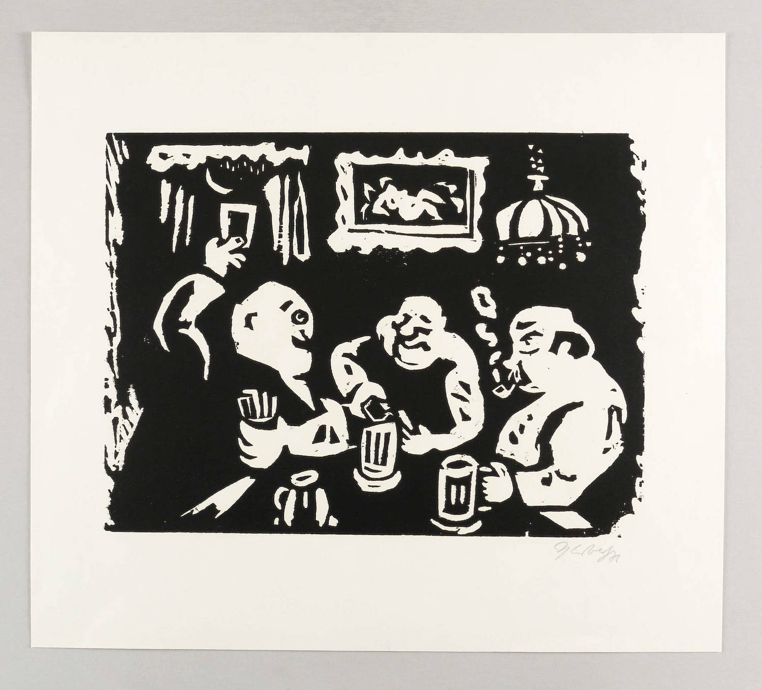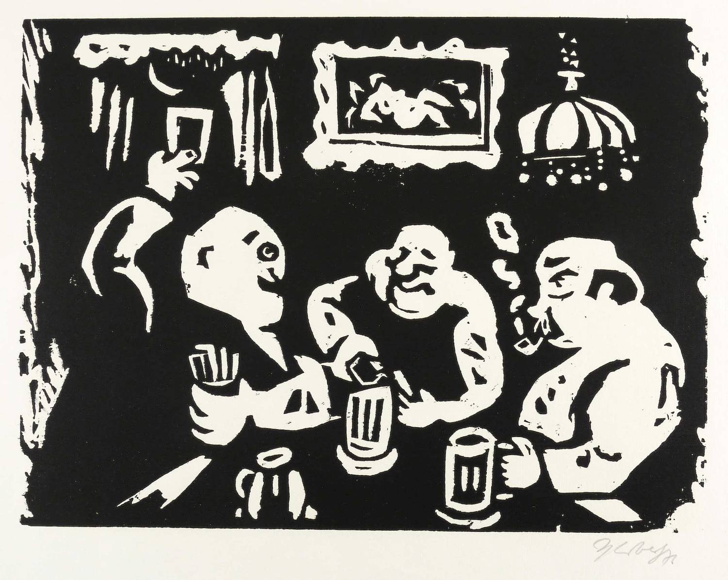 1976. Holzschnitt, in Schwarz, auf hartem hellchamois Maschinenbütten. – Originale Künstlergrafik, von Herbert Sandberg. – Künstlerexemplar (e.a.). – 26,7 x 35,9 cm (Darstellung / Druckstock), 42 x 46 cm (Blatt).