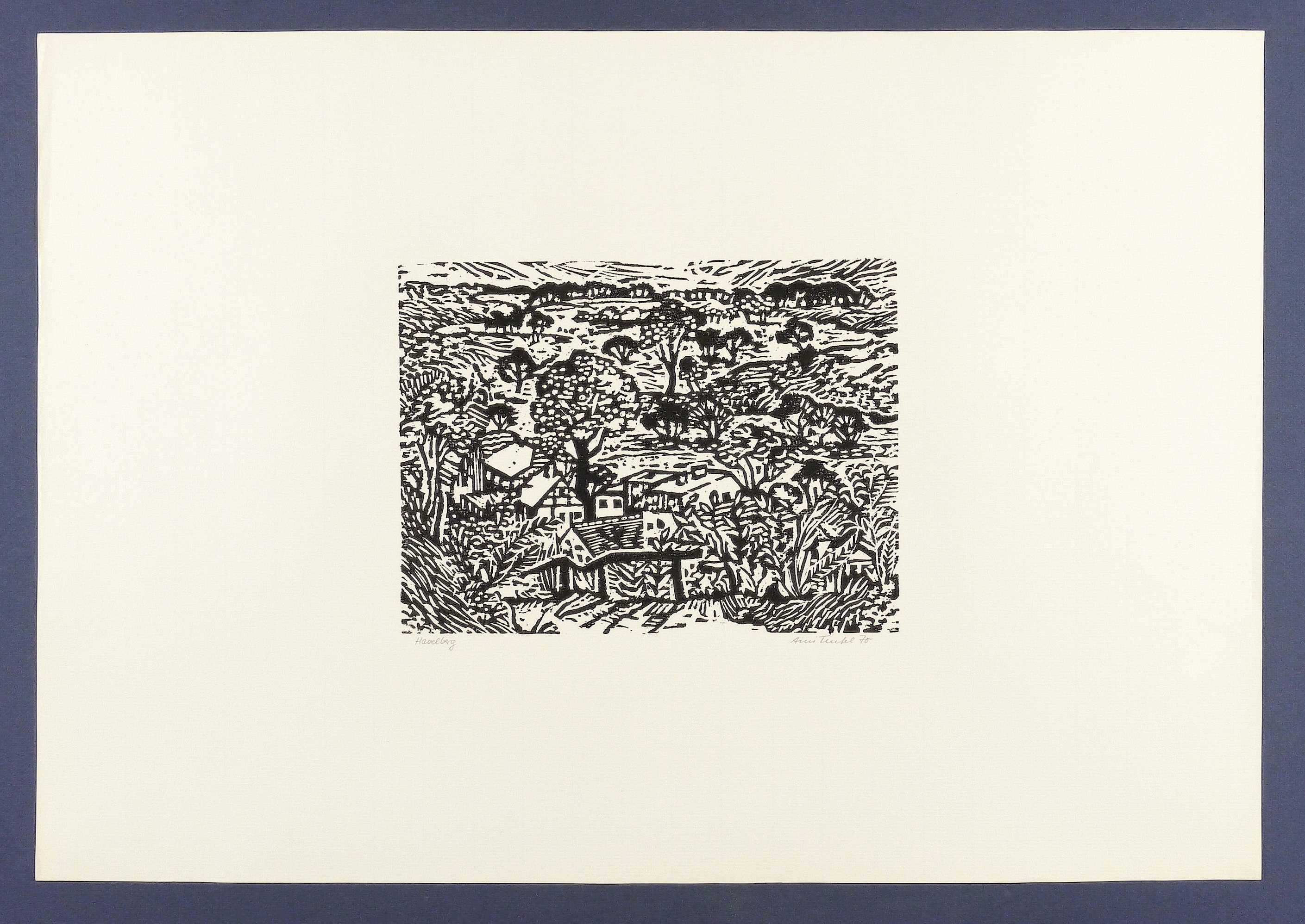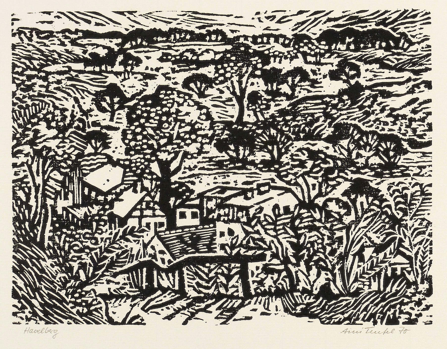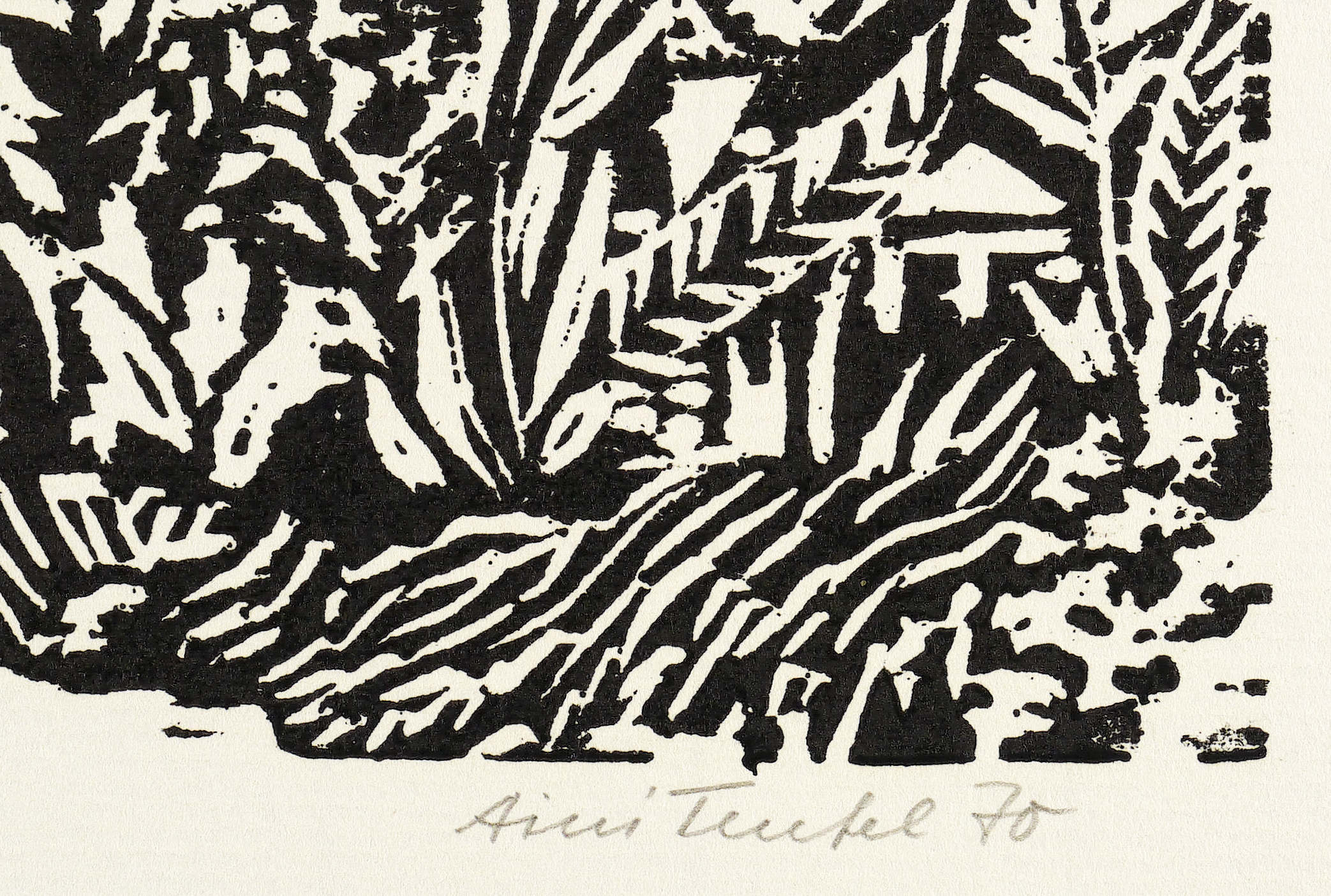 1970. Holzschnitt, in Schwarz, auf Achat-Bütten. – Originale Künstlergrafik, von Aini Teufel. – Auflage 100 Exemplare. – 17,9 x 23,8 cm (Darstellung), 41 x 59 cm (Blatt).