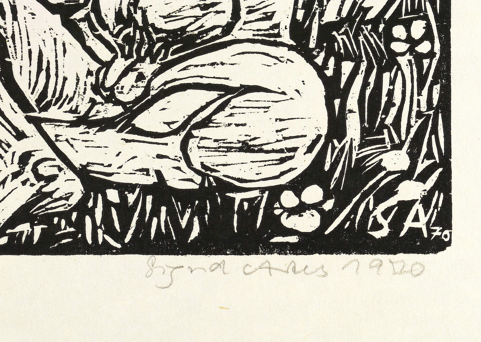 1970. Holzschnitt, in Schwarz, auf festem glattem Japanpapier. – Originale Künstlergrafik, von Sigrid Artes. – Auflage Exemplar Nr. 91/100. – 23,7 x 28,0 cm (Darstellung), 56 x 42 cm (Blatt).