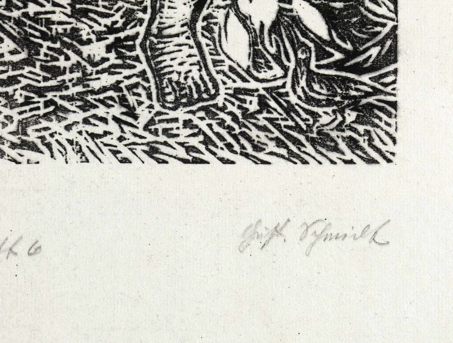 1927. Holzschnitt, in Schwarz, auf Japanbütten. – Originale Künstlergrafik, von Gustav Schmidt. – 32,2 x 24,3 cm (Darstellung / Druckstock), 49 x 34 cm (Blatt).