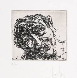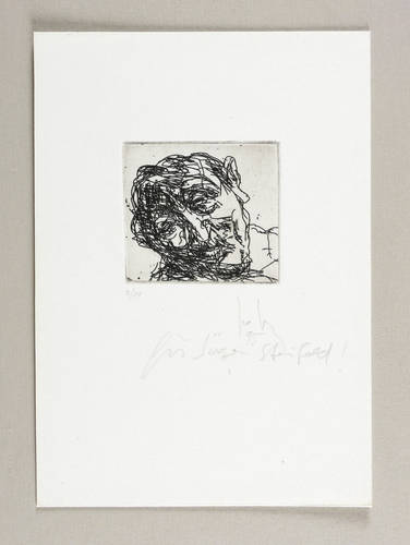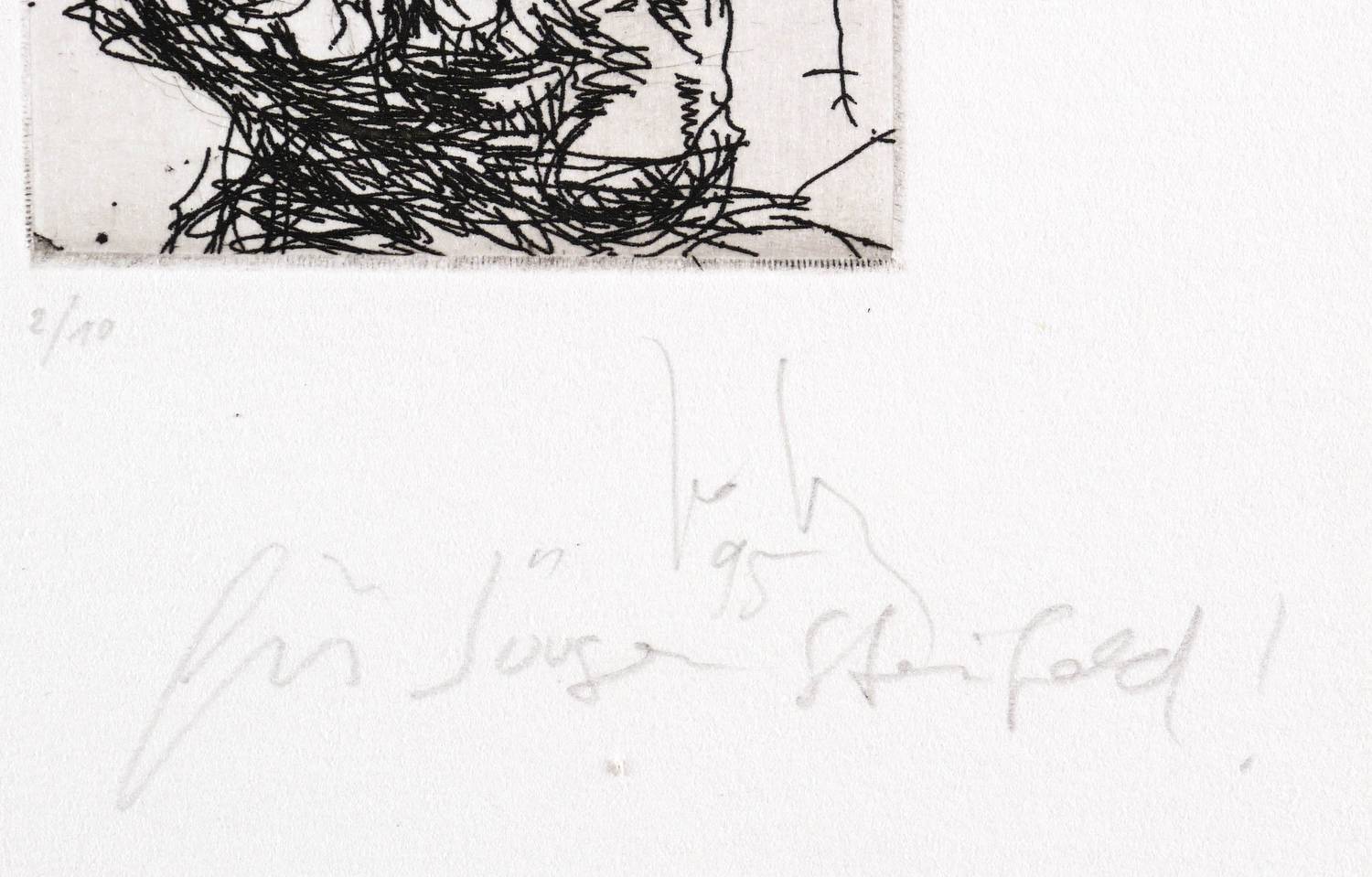 1995. Radierung / Strichätzung, in Schwarz, mit leichtem Plattenton, auf hellchamois Velin. – Originale Künstlergrafik, von Joachim John. – Auflage Exemplar Nr. 2/10. – 6,0 x 6,5 cm (Darstellung / Platte), 20 x 15 cm (Blatt).
