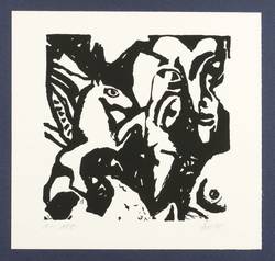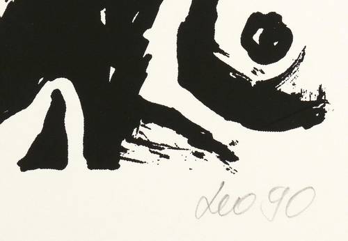 1990. Siebdruck / Serigrafie, in Schwarz, auf weißem Karton. – Originale Künstlergrafik, von Leonore Adler. – Auflage Exemplar Nr. 1/100. – 16,1 x 15,9 cm (Darstellung / Druckbild), 21 x 21,5 cm (Blatt).