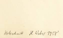1958. Holzschnitt, in Schwarz, auf leichtem gelblichem Maschinenpapier. – Originale Künstlergrafik, von Horst Weber. – 29,1 x 19,9 cm (Darstellung / Druckstock), 60 x 42 cm (Blatt).
