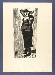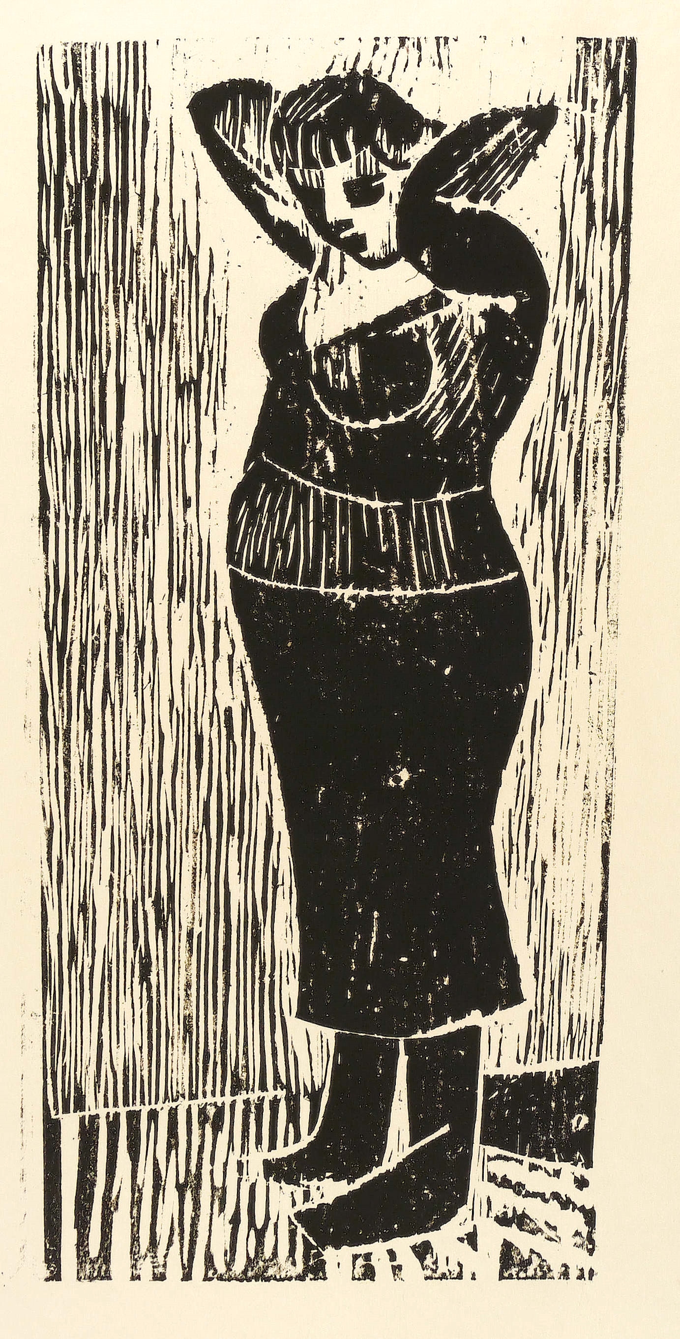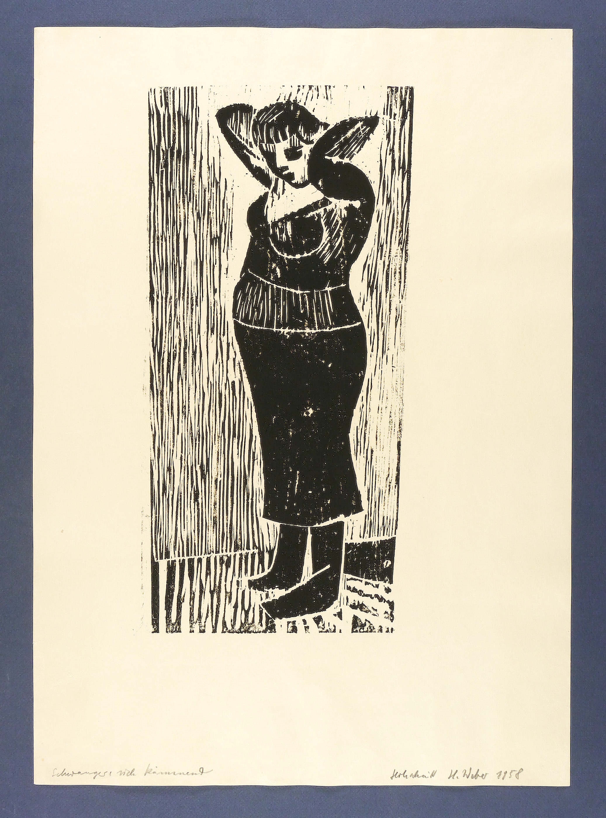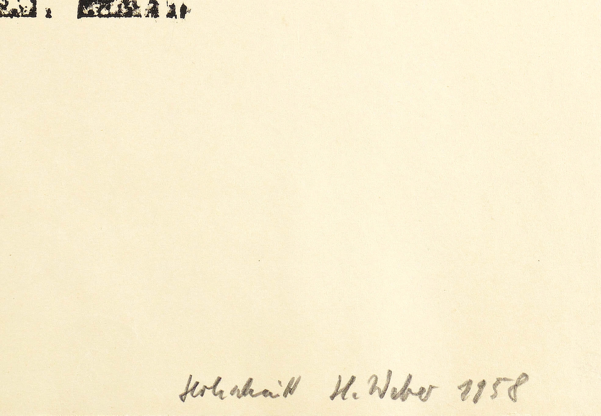 1958. Holzschnitt, in Schwarz, auf leichtem gelblichem Maschinenpapier. – Originale Künstlergrafik, von Horst Weber. – 42,8 x 20,6 cm (Darstellung / Druckstock), 60 x 42 cm (Blatt).
