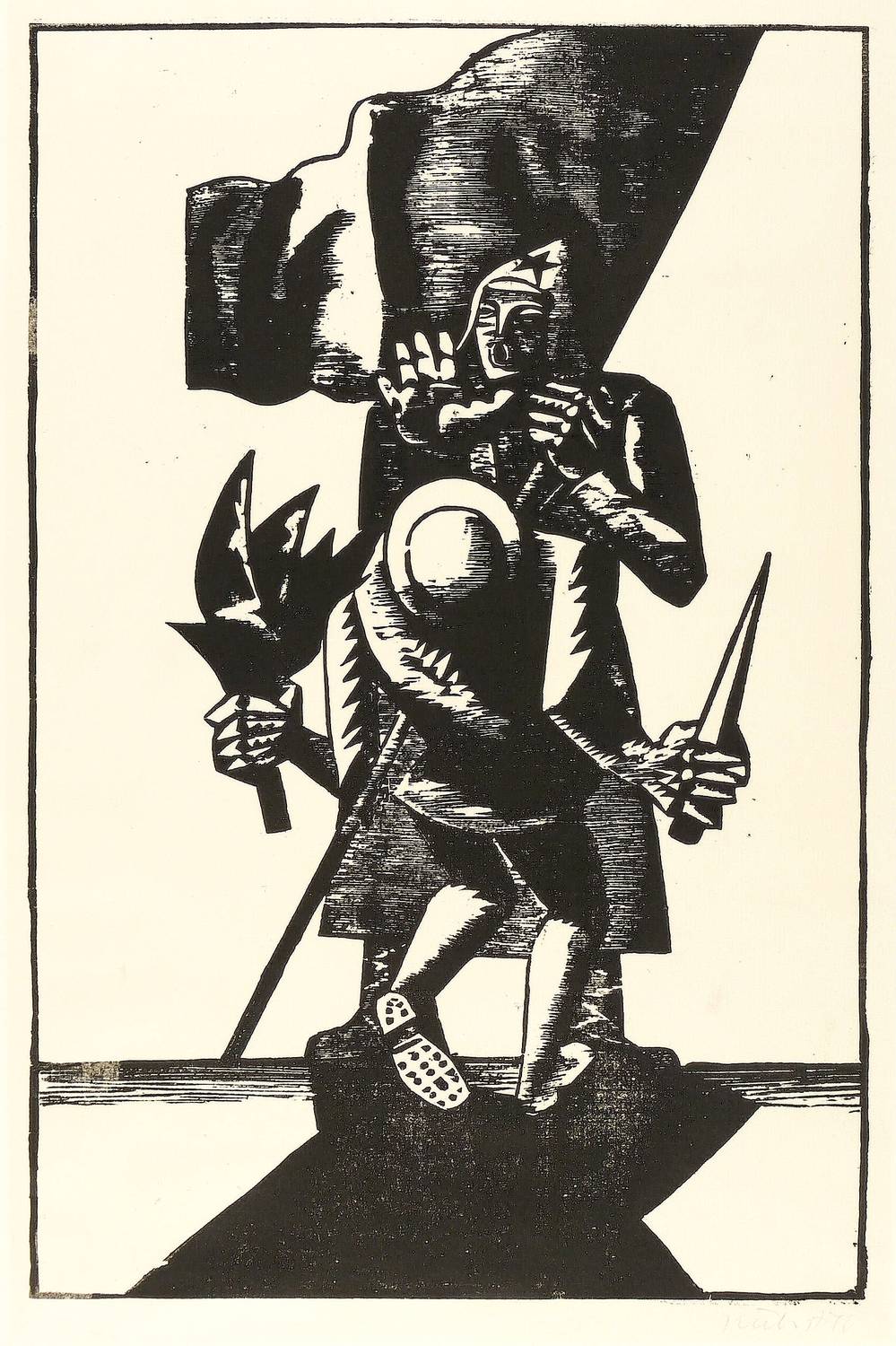 1970. Holzschnitt, in Schwarz, auf Achat-Bütten. – Originale Künstlergrafik, von Rolf Kuhrt. – 44,2 x 29,1 cm (Darstellung), 59 x 45 cm (Blatt).