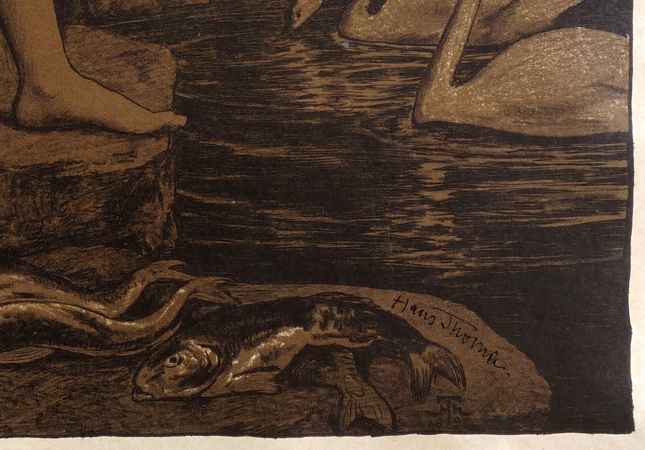 In der Darstellung rechts unten mit schwarzer Feder signiert: ″Hans Thoma″. Im Stein direkt darunter Monogramm und Jahr: ″18 HTh 97″. – Sehr schönes schmalrandiges Exemplar. Papier rückseitig unregelmäßig gebräunt. Sonst tadellos. Guter Zustand.