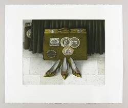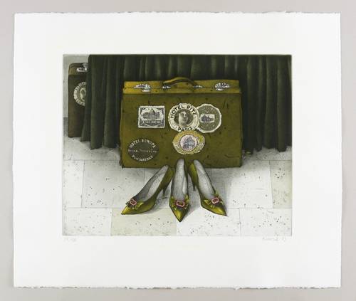 1983. Farbradierung / Aquatinta & Strichätzung, in 7 Farben, auf kräftigem weißem Arches-France-Bütten. – Originale Künstlergrafik, von Diether Kressel. – Auflage Exemplar Nr. 37/100. – 38,1 x 48,0 cm (Darstellung / Platte), 58 x 69 cm (Blatt).