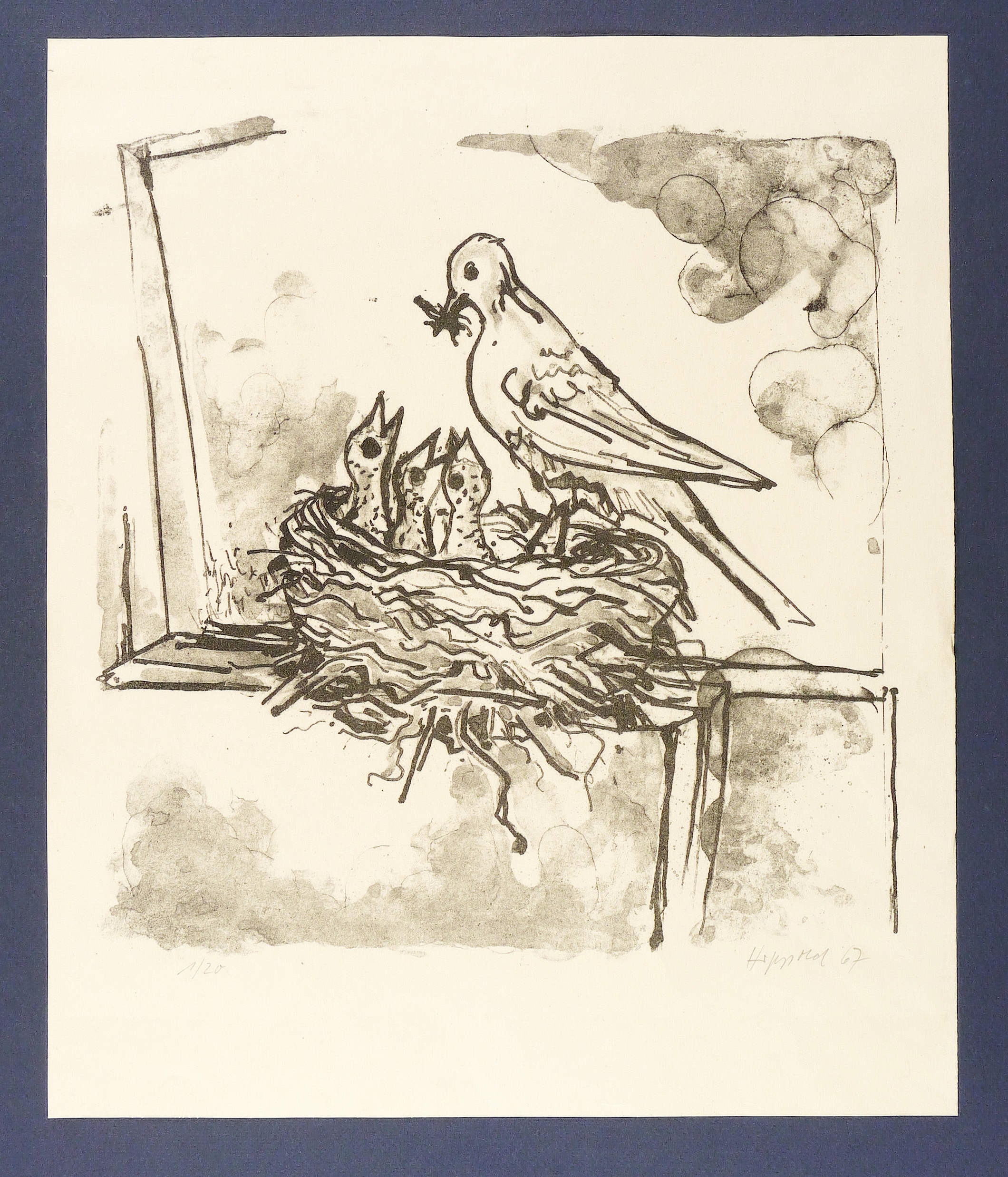 1967. Lithografie / Pinsellithografie, in Schwarz, auf hellgelbem Papier. – Originale Künstlergrafik, von Erhard Hippold. – Auflage Exemplar Nr. 1/20. – 31,6 x 30,4 cm (Darstellung), 42 x 35 cm (Blatt).