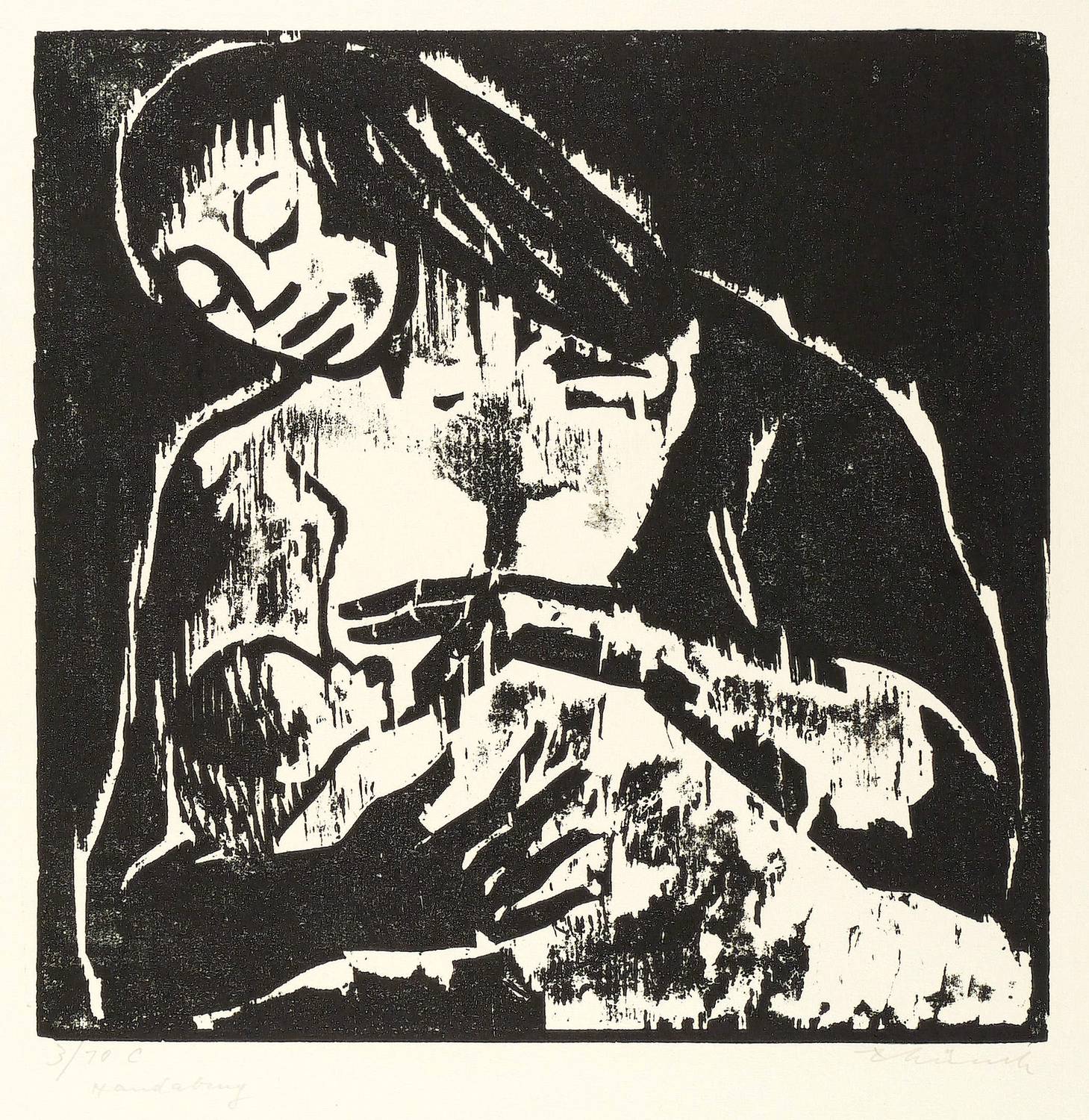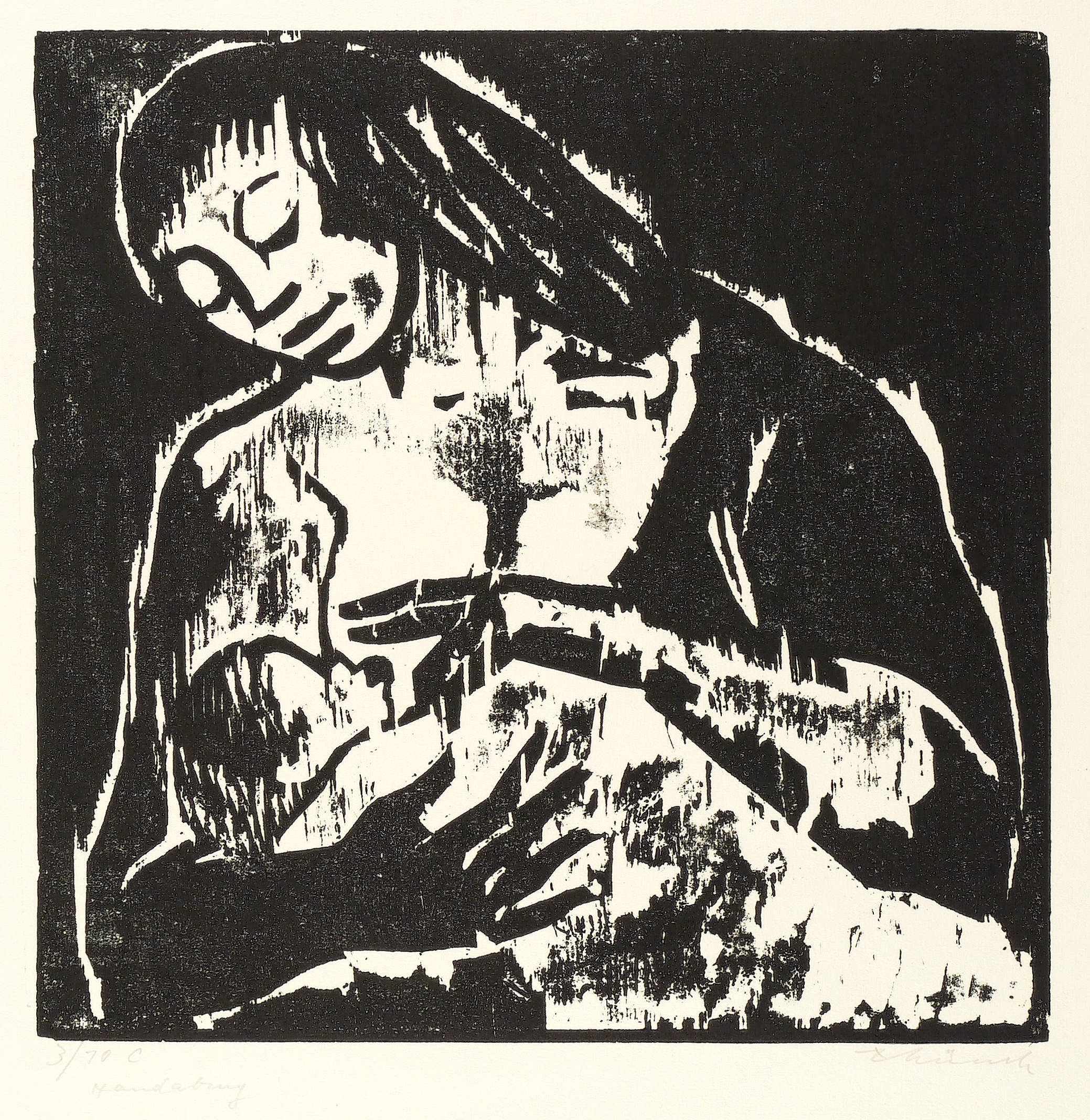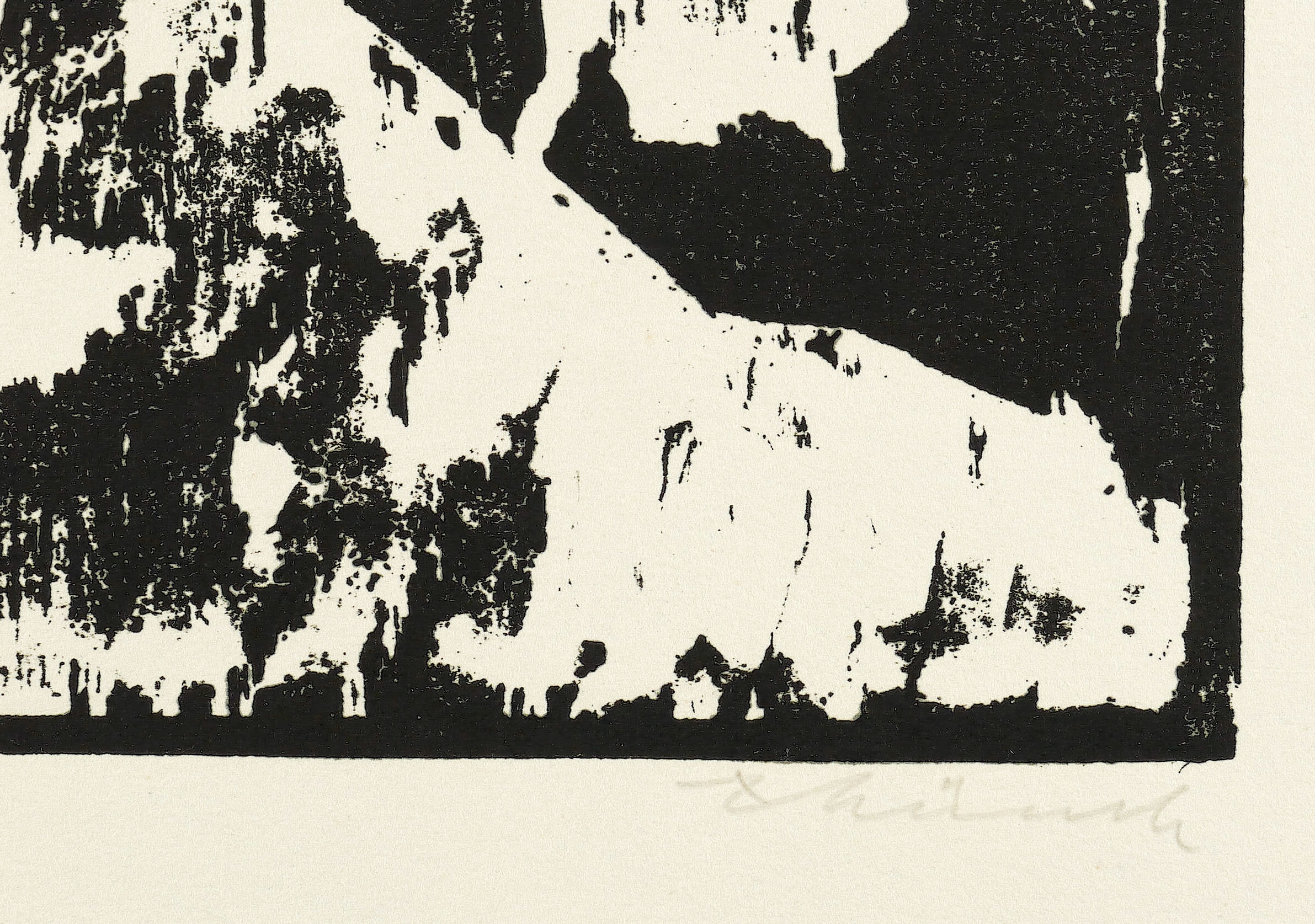Um 1970. Linolschnitt, in Schwarz, auf Maschinenbütten. – Originale Künstlergrafik, von Armin Münch. – Auflage Exemplar Nr. 3/10. – 30,1 x 30,0 cm (Darstellung), 43 x 36 cm (Blatt).