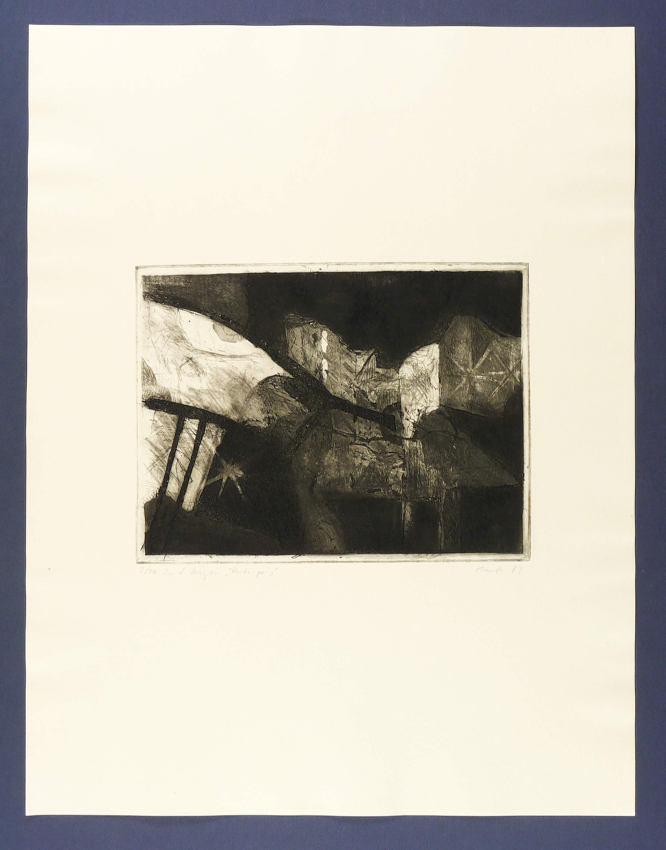 1981. Radierung / Aquatinta & Strichätzung, in Schwarz, auf hellchamois Weißenborn-Bütten. – Originale Künstlergrafik, von Jürgen Haufe. – Auflage Exemplar Nr. 2/50. – 24,6 x 32,3 cm (Darstellung / Platte), 65 x 50 cm (Blatt).