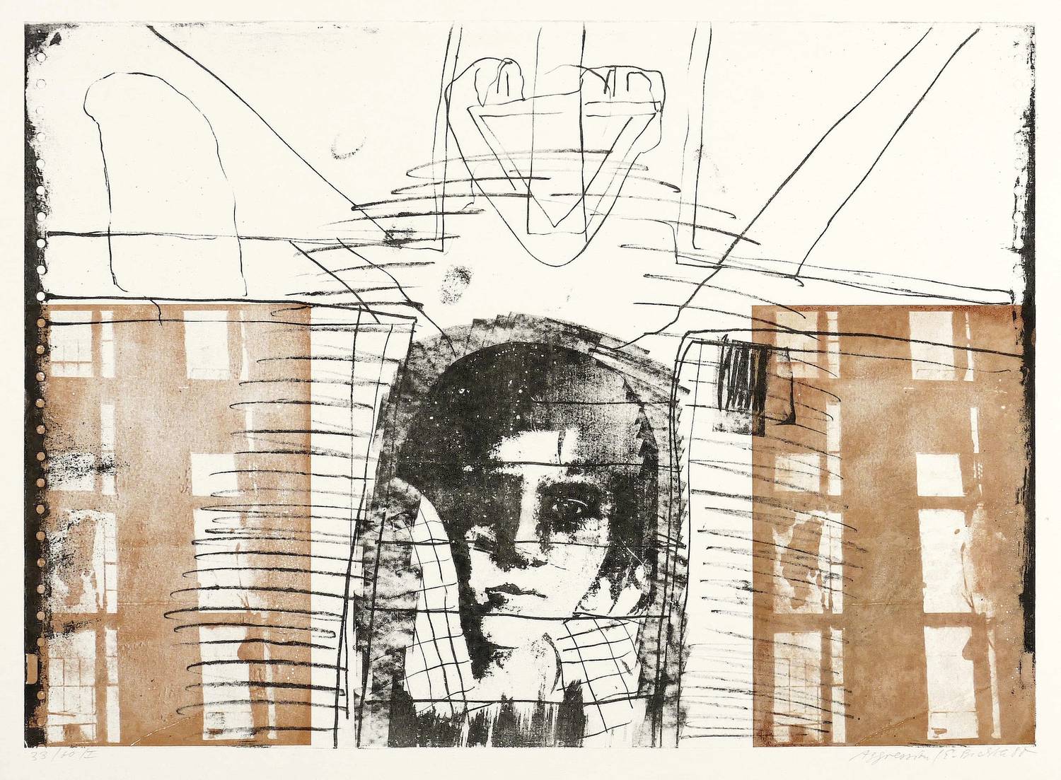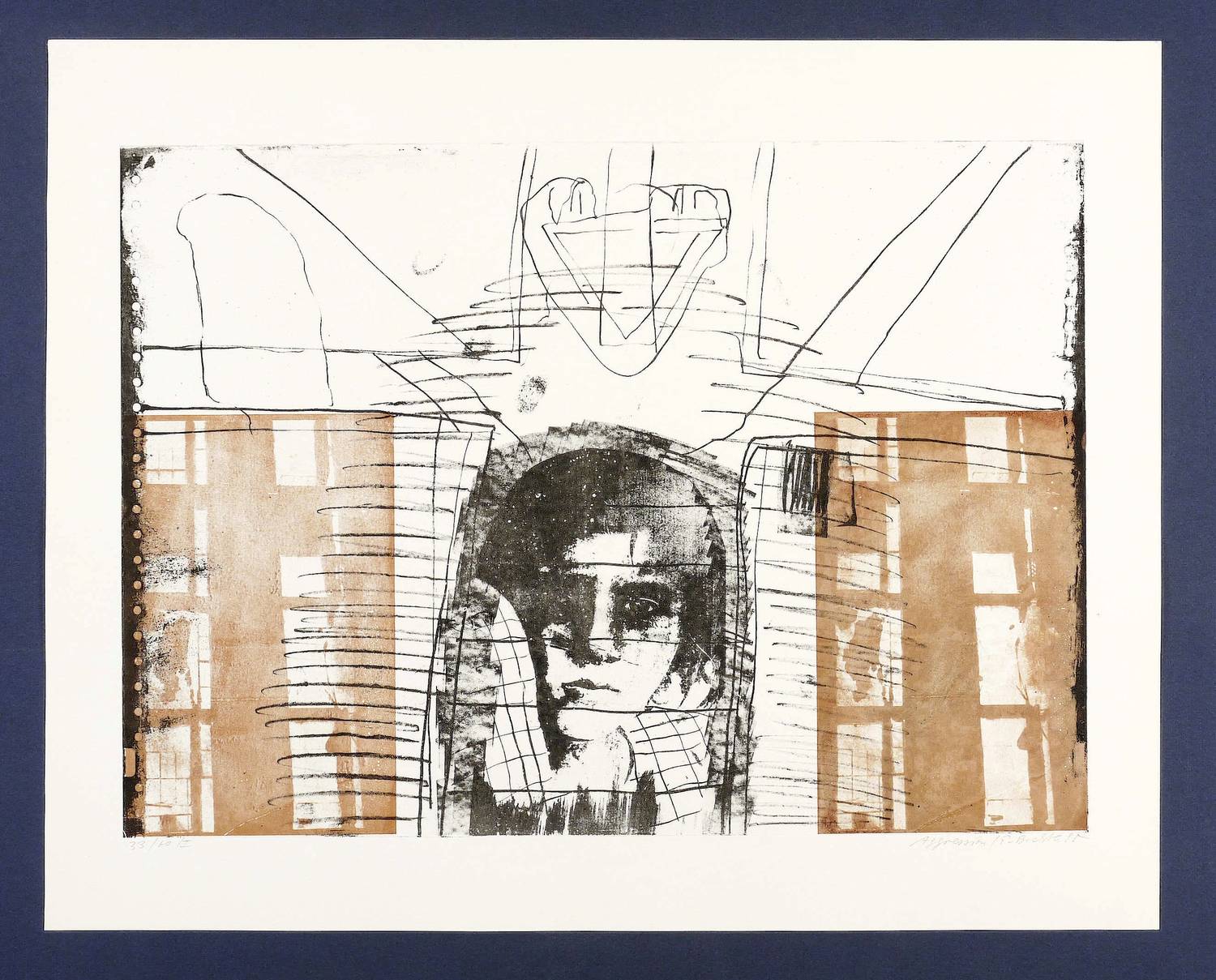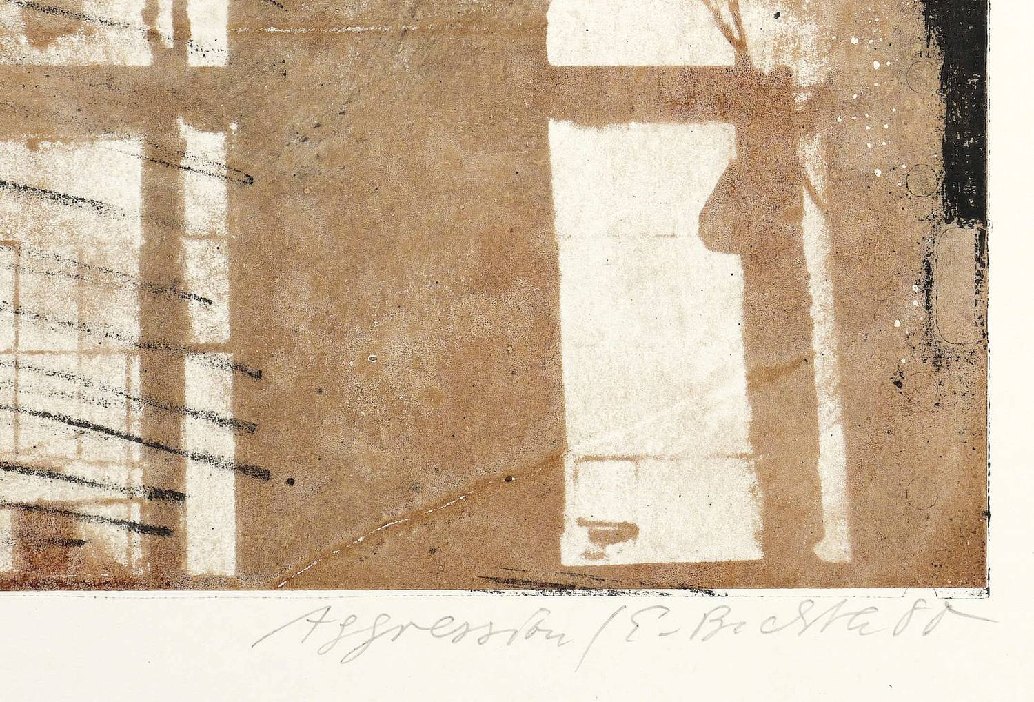 1980. Farblithografie / Offsetlithografie, in Braun & Schwarz, auf glattem weißem Karton. – Originale Künstlergrafik, von Edmund Bechtle. – Auflage Exemplar Nr. 33/60. – 34,2 x 47,5 cm (Darstellung / Druckbild), 44 x 55 cm (Blatt).