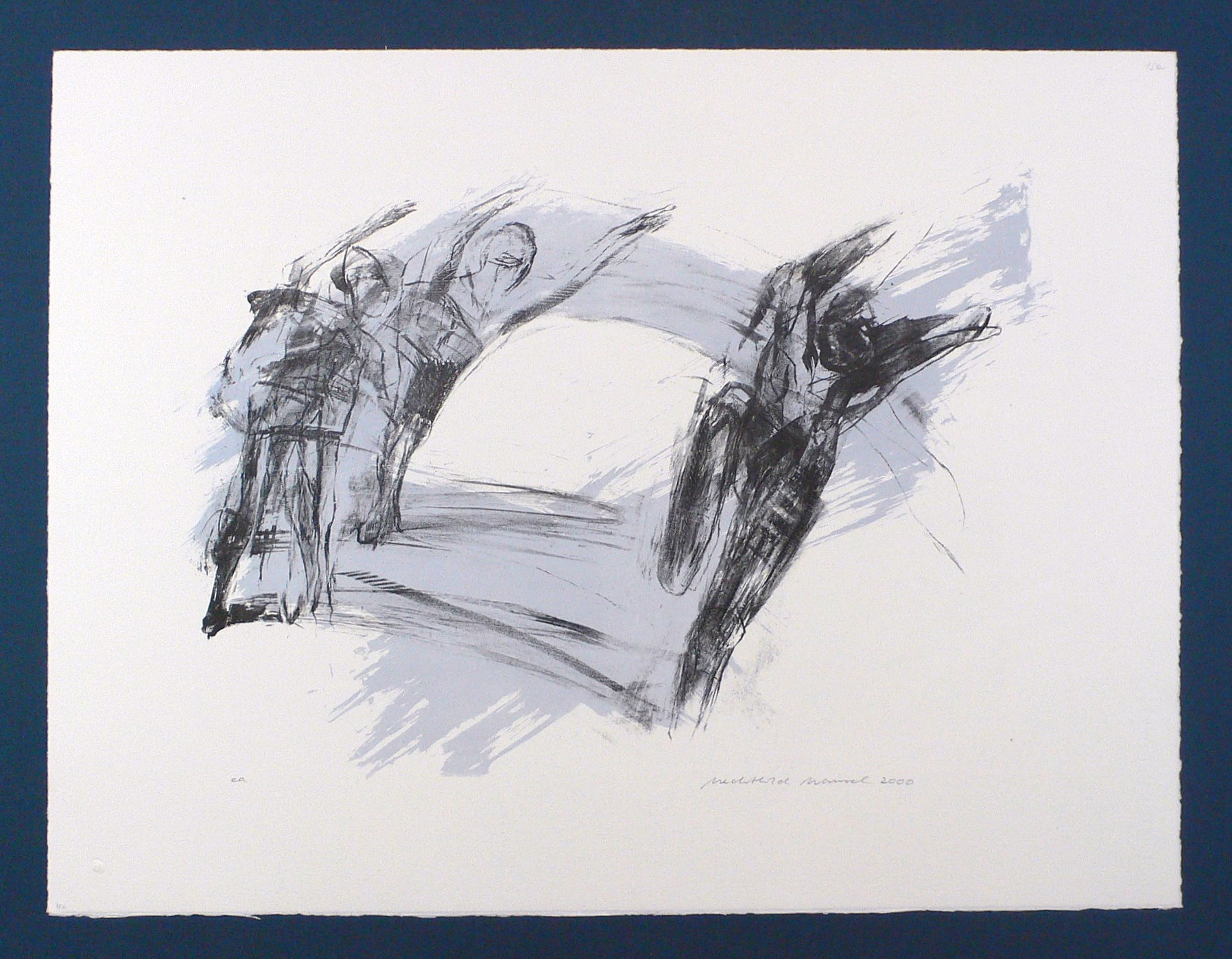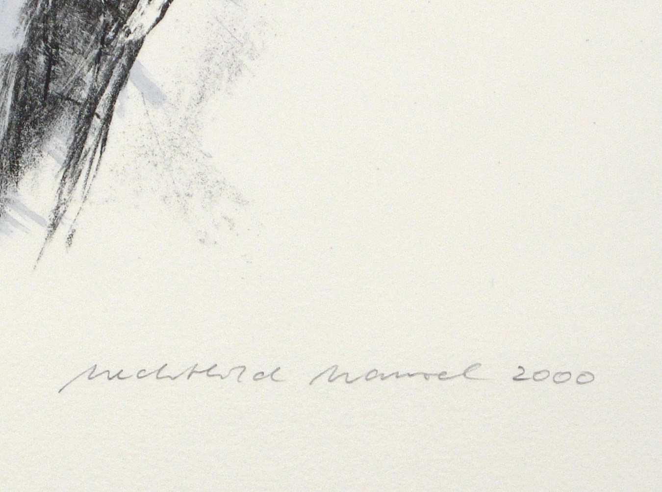 2000. Farblithografie / Kreide- & Pinsellithografie, in Hellblau & Schwarz, auf Hahnemühle-Bütten. – Originale Künstlergrafik, von Mechthild Mansel. – Künstlerexemplar (e.a.). – 37,0 x 53,5 cm (Darstellung / Stein), 53,5 x 70 cm (-).