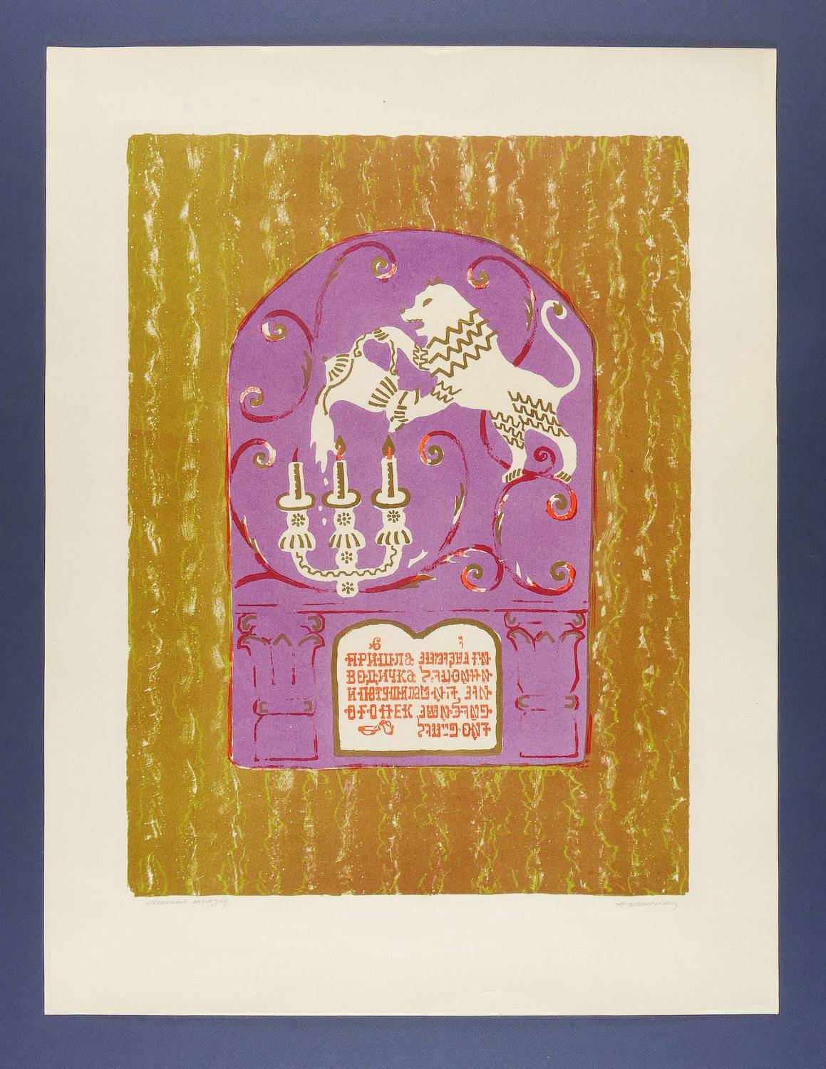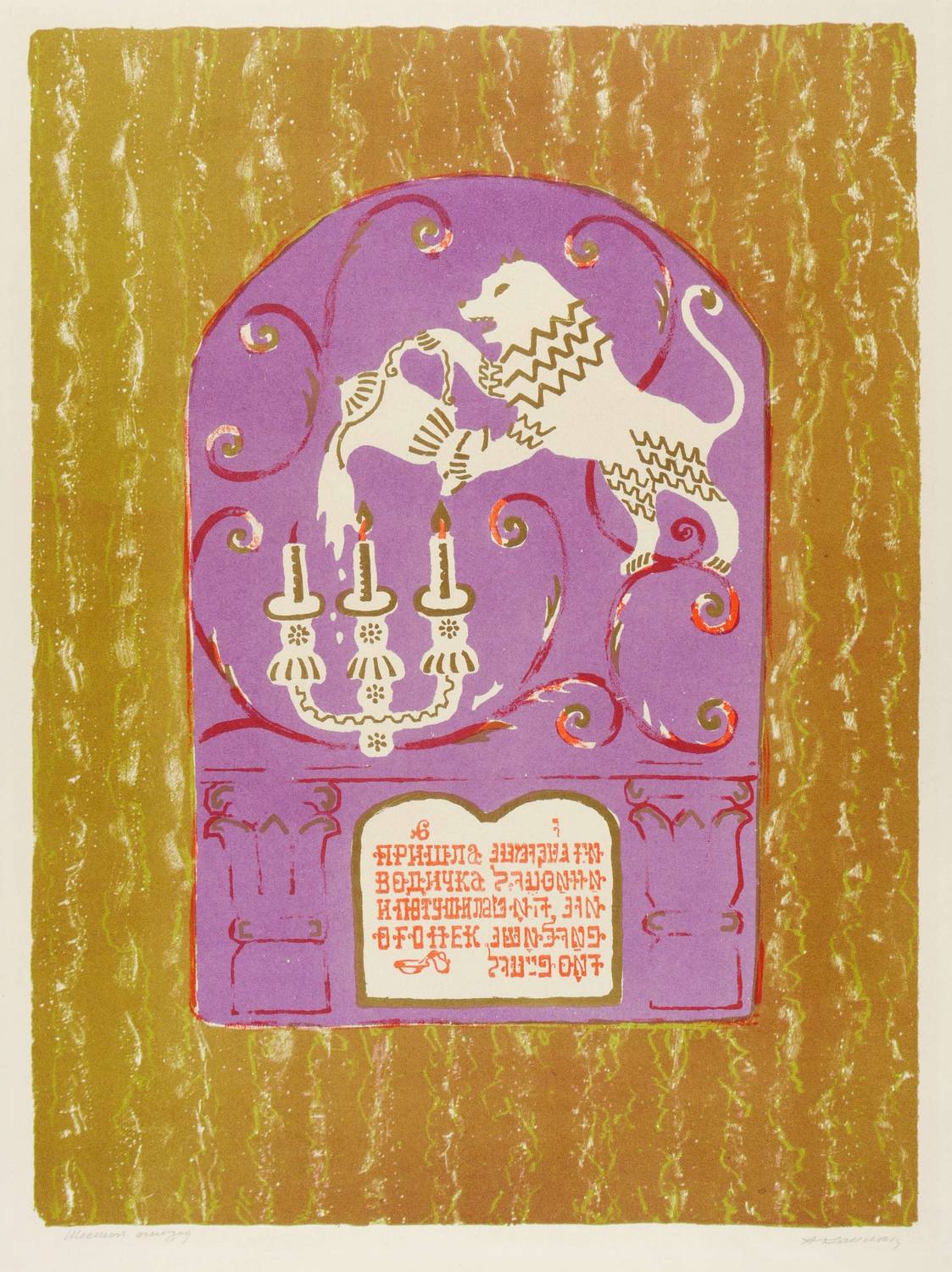 1961. Farblithografie / Pinsellithografie, in Braun, Violett, Rot, Gold & Ocker, auf hellchamois Velin. – Originale Künstlergrafik, von Anatoli Kaplan. – 49,0 x 36,2 cm (Darstellung / Druckbild), 62 x 47 cm (Blatt).