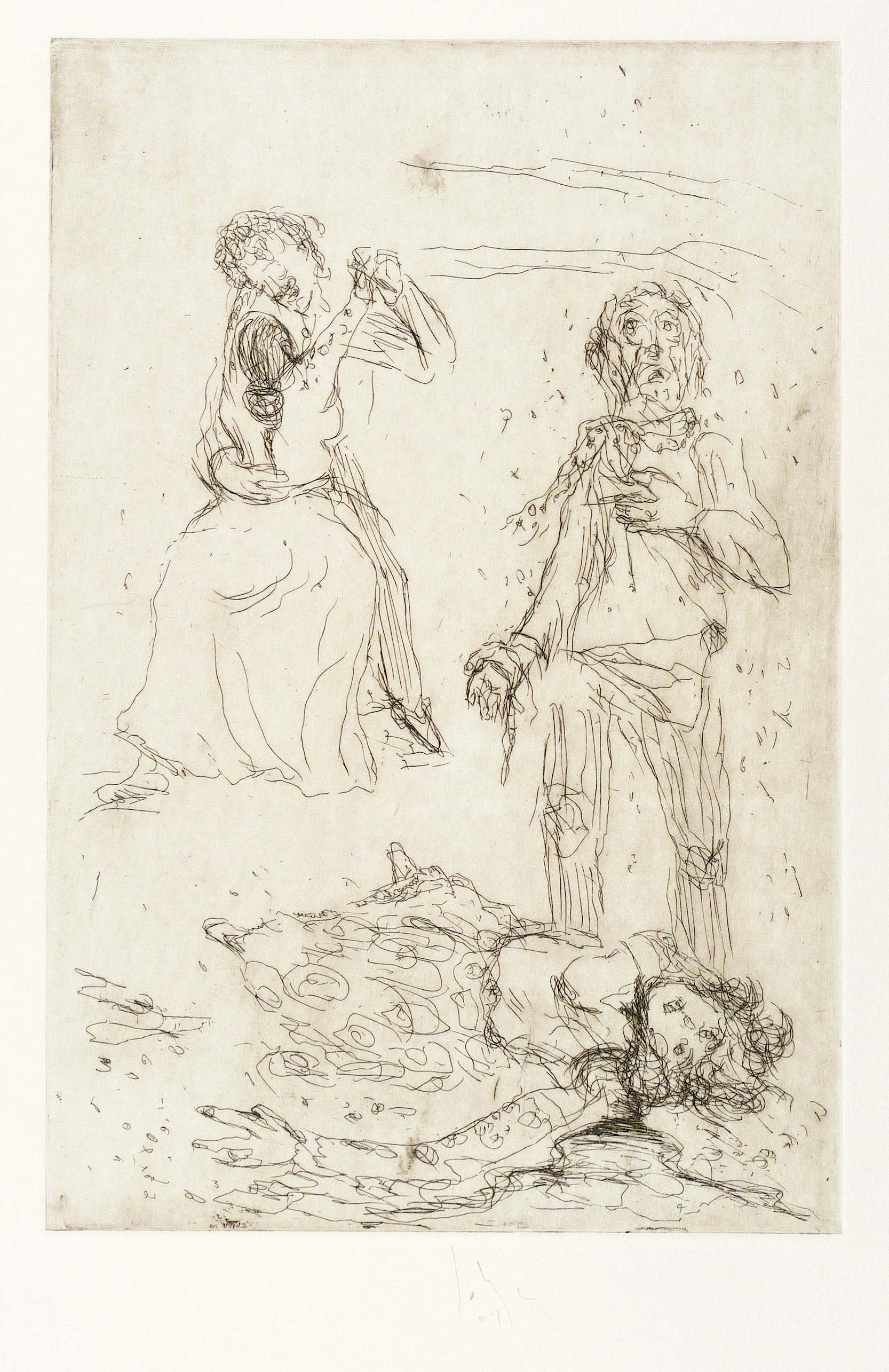 2004. Radierung / Kaltnadel, in Schwarz, auf hellem Büttenkarton. – Originale Künstlergrafik, von Joachim John. – 28,3 x 18,8 cm (Darstellung / Platte), 38,5 x 32 cm (Blatt).