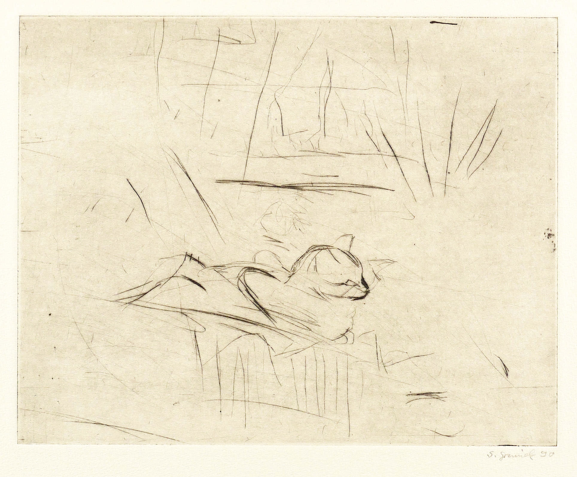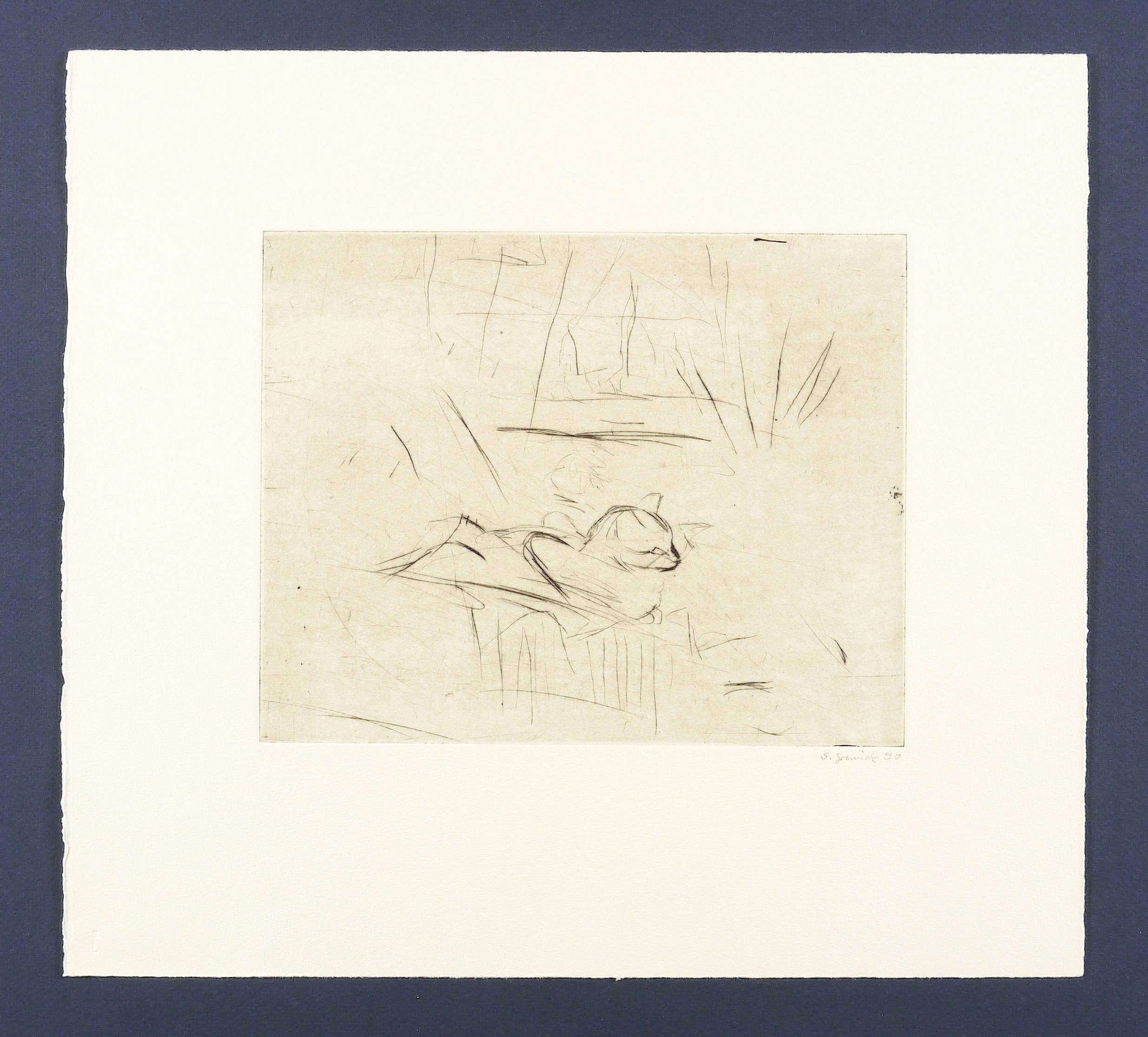 1990. Radierung / Kaltnadel, mit Plattenton, in Schwarz, auf Hahnemühle-Bütten. – Originale Künstlergrafik, von Sabina Grzimek. – 19,8 x 24,8 cm (Darstellung / Platte), 36 x 40 cm (Blatt).