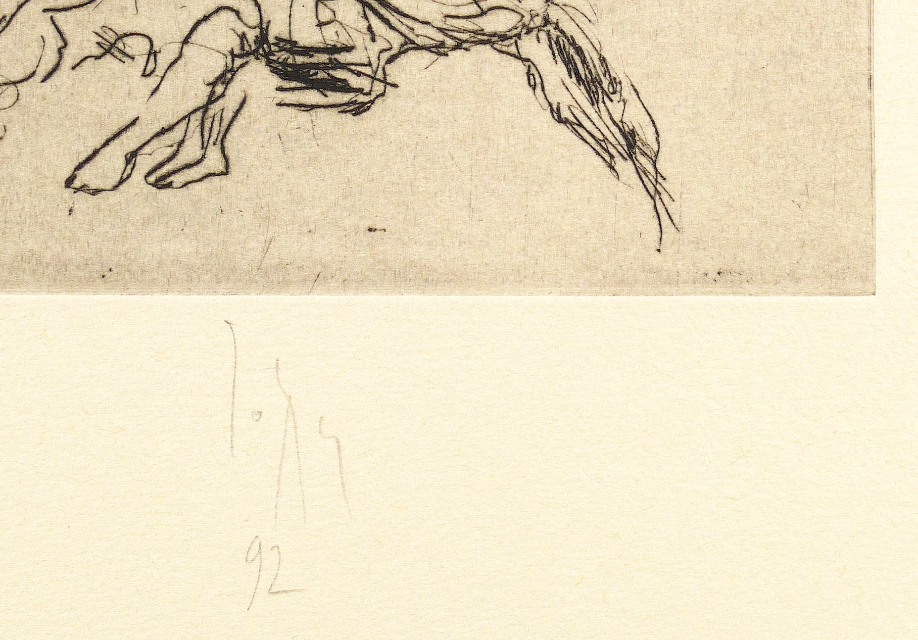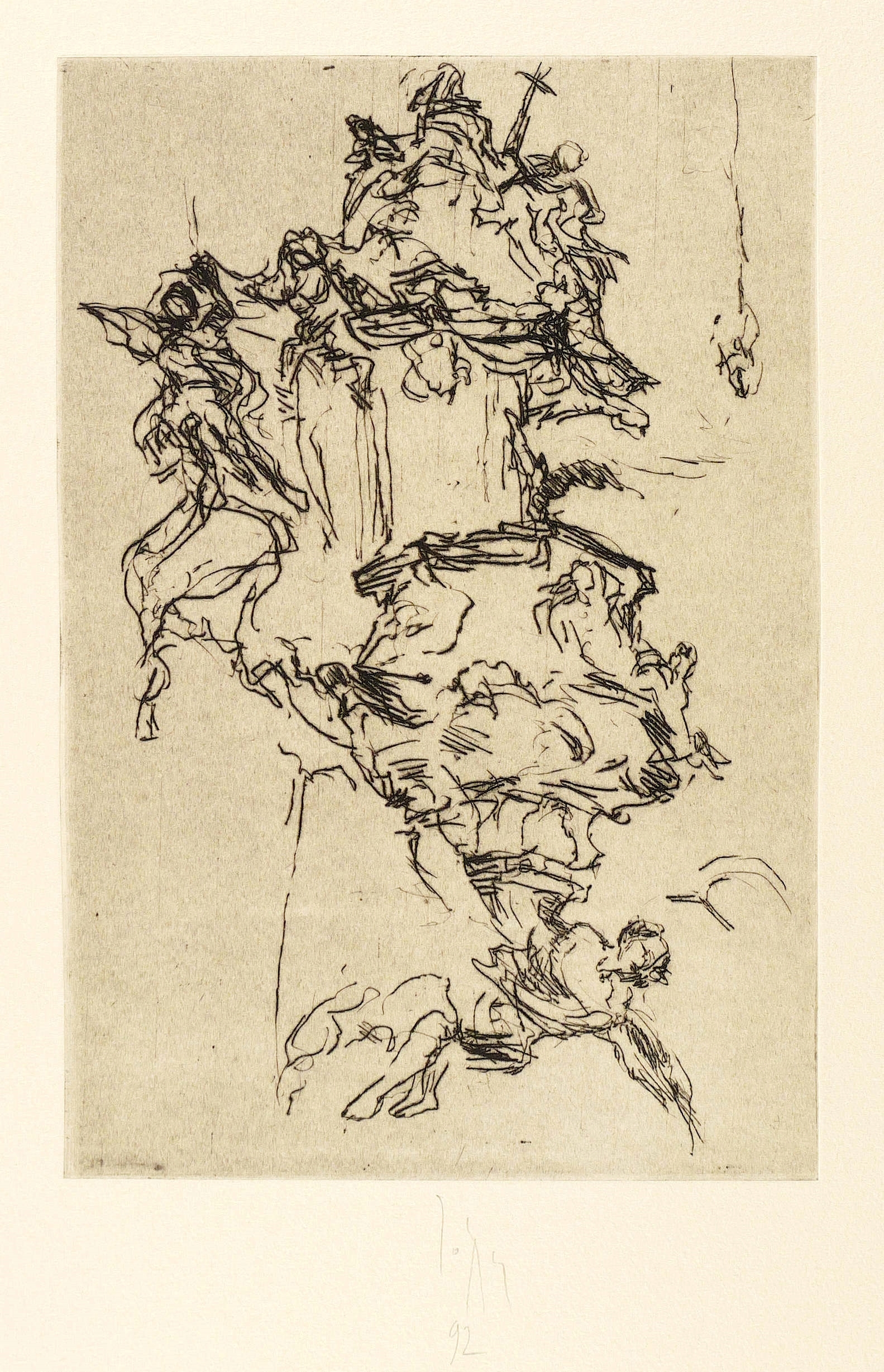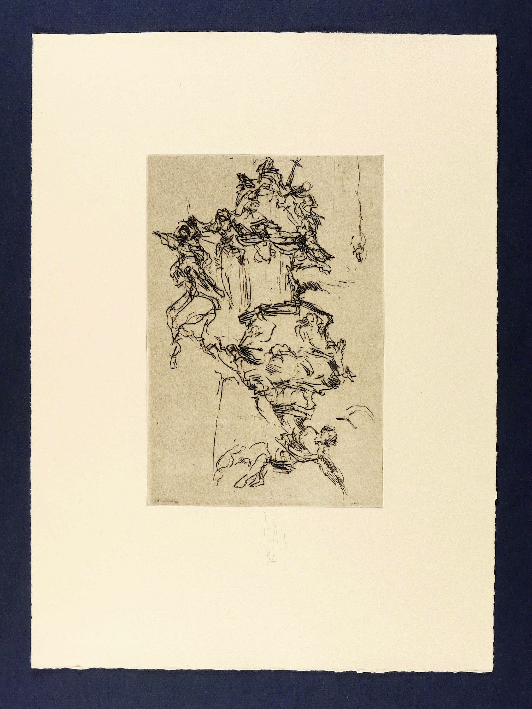 1992. Radierung / Kaltnadel, mit Plattenton, in Schwarz, auf Hahnemühle-Bütten. – Originale Künstlergrafik, von Joachim John. – 29,5 x 19,8 cm (Darstellung / Platte), 53 x 39 cm (Blatt).