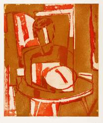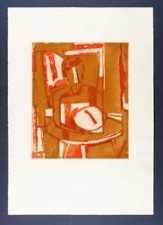 1994. Farbradierung / Aquatinta, in Ocker & Orange, auf hellem Büttenkarton. – Originale Künstlergrafik, von Wolfgang Leber. – 39,4 x 33,0 cm (Darstellung / Platte), 70 x 50 cm (Blatt).