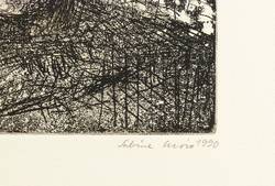1990. Radierung / Aquatinta, in Schwarz, auf hellchamois Hahnemühle-Bütten. – Originale Künstlergrafik, von Sabine Curio. – Druckerexemplar. – 27,7 x 21,8 cm (Darstellung / Platte), 53 x 39 cm (Blatt).