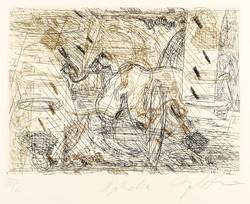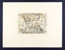 1996. Farbradierung / Strichätzung, in Braun & Schwarz, auf hellchamois Büttenkarton. – Originale Künstlergrafik, von Dieter Goltzsche. – Auflage Exemplar Nr. VIII/X. – 23,7 x 32,6 cm (Darstellung / Platte), 50 x 65 cm (Blatt).