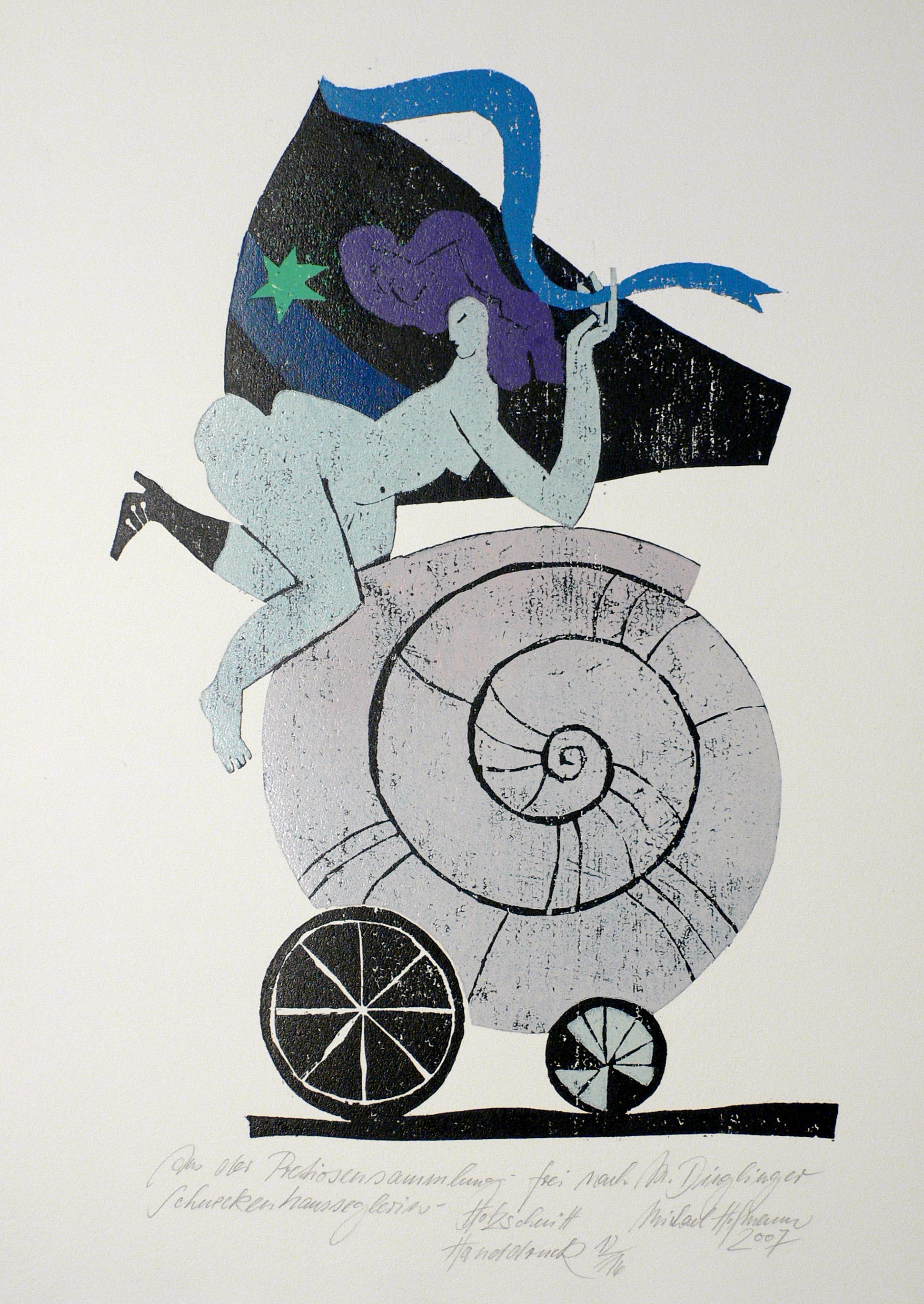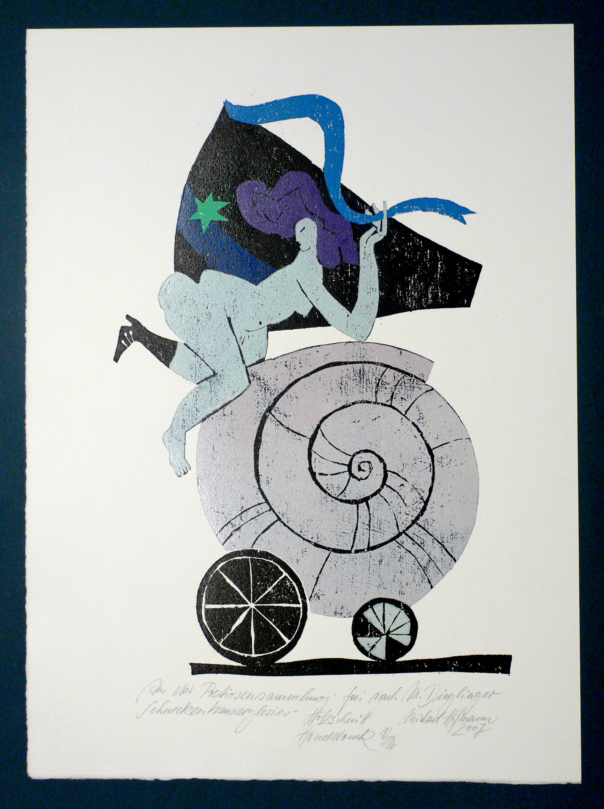 2007. Farbholzschnitt, auf Hahnemühle-Bütten. – Originale Künstlergrafik, von Michael Hofmann. – Auflage Exemplar Nr. 12/16. – 41,8 x 26,5 cm (Darstellung / Druckstock), 54, x 39,5 cm (Blatt).