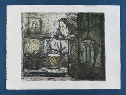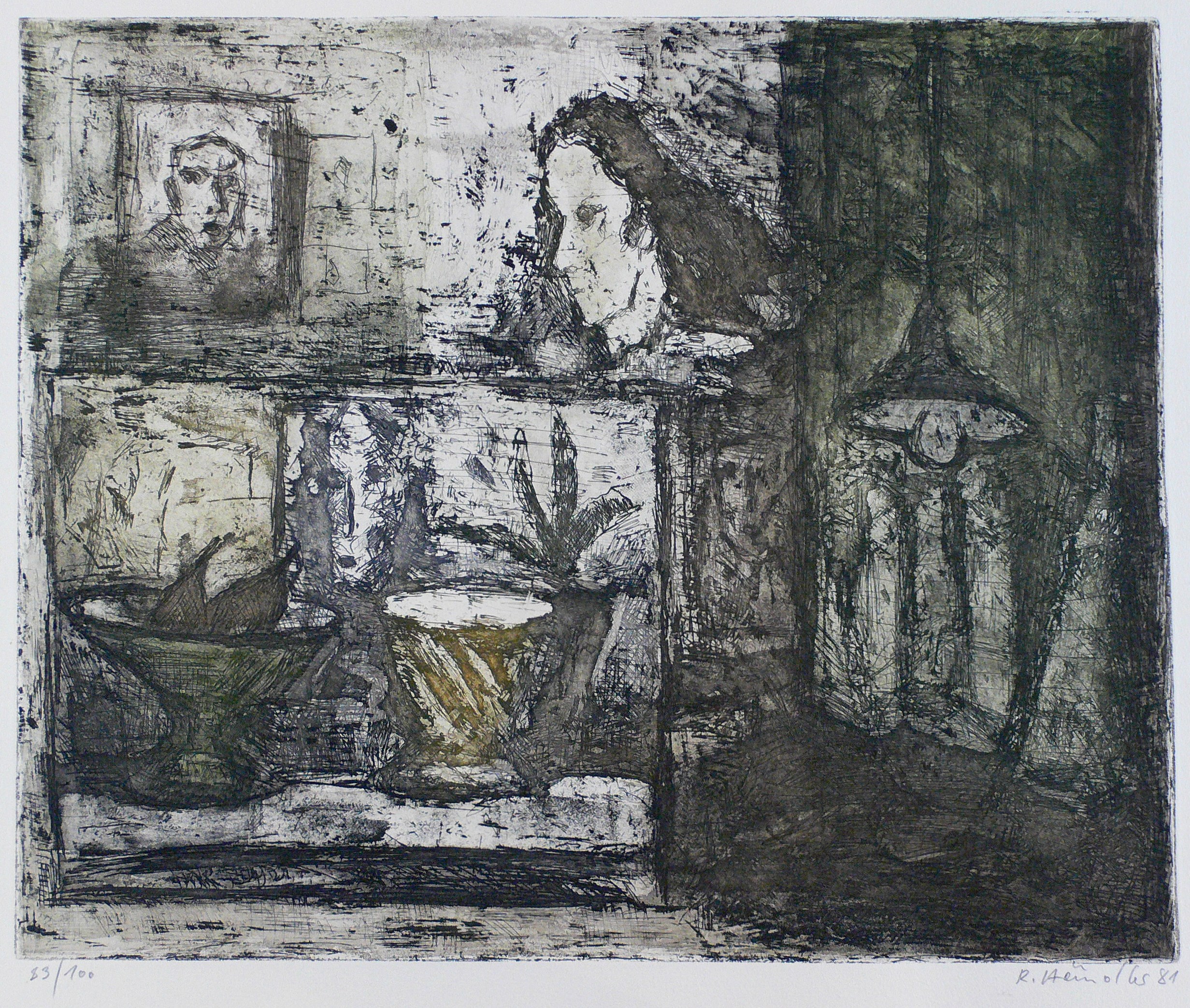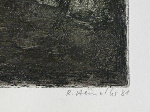 1981. Farbradierung / Strichätzung & Aquatinta, in Grün, Violett & Schwarz, auf chamois Hahnemühle. – Originale Künstlergrafik, von Rolf Händler. – Auflage Exemplar Nr. 89/100. – 32,3 x 39,0 cm (Darstellung / Platte), 40 x 53 cm (Blatt).