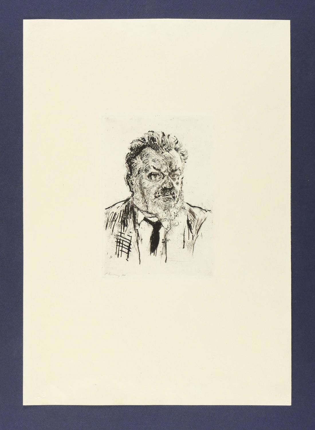 1922. Radierung / Vernis mou, Strichätzung & Kaltnadel, in Schwarz, auf gelbem Büttenkarton. – Originale Künstlergrafik, von Max Slevogt. – Auflage 100 Exemplare. – 19,9 x 13,8 cm (Darstellung / Platte), 47 x 33 cm (Blatt).