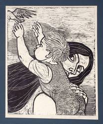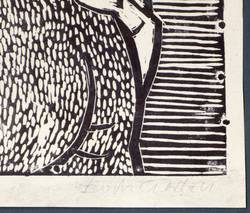 1983. Linolschnitt, in Schwarz, auf glattem gelblichem Karton. – Originale Künstlergrafik, von Erich Gerlach. – 57,8 x 47,0 cm (Darstellung), 60 x 49 cm (Blatt).