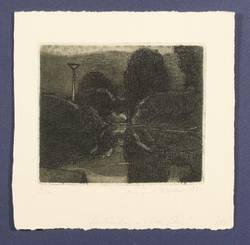 1981. Radierung / Aquatinta & Strichätzung, in Schwarz, auf gelbem Büttenkarton. – Von Manfred Butzmann. – 11,4 x 13,5 cm (Darstellung / Platte), 17,5 x 17,5 cm (Blatt).