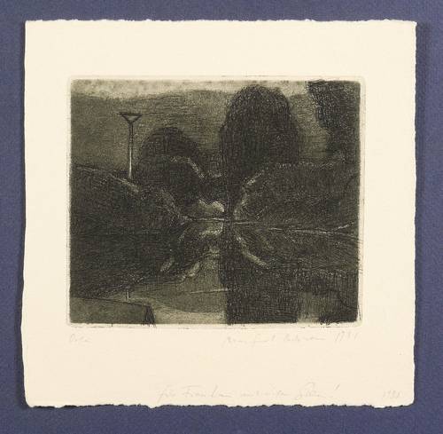 Rechts unten in Bleistift signiert und datiert. Links Titel. Am unteren Blattrand persönliche Widmung des Künstlers. – Sehr gut erhalten.
