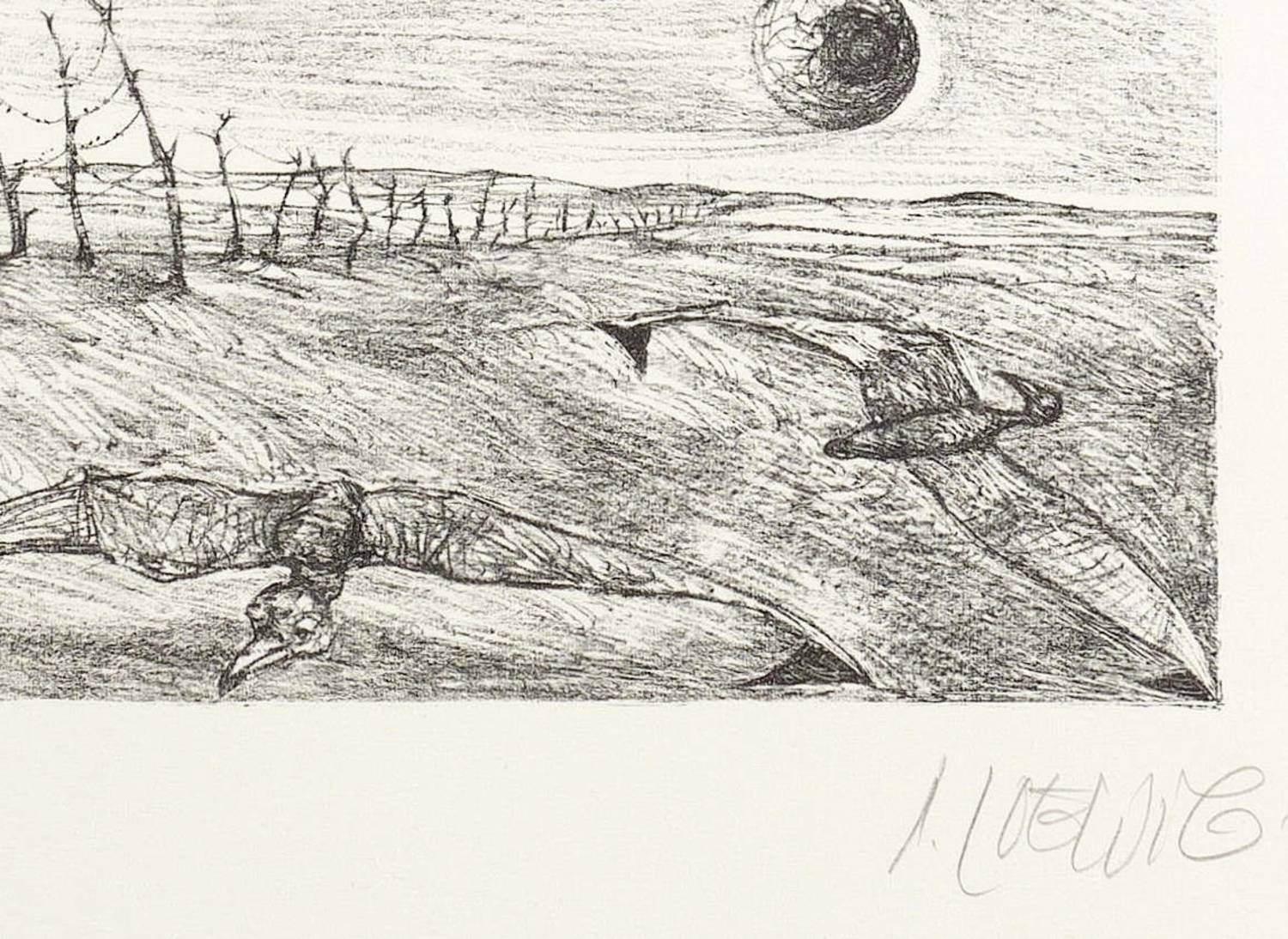 1972. Lithografie / Kreidelithografie, in Schwarz, auf BFK-Rives-Bütten. – Originale Künstlergrafik, von Roger Loewig. – 22,6 x 33,0 cm (Darstellung / Druckbild), 40 x 50 cm (Blatt).