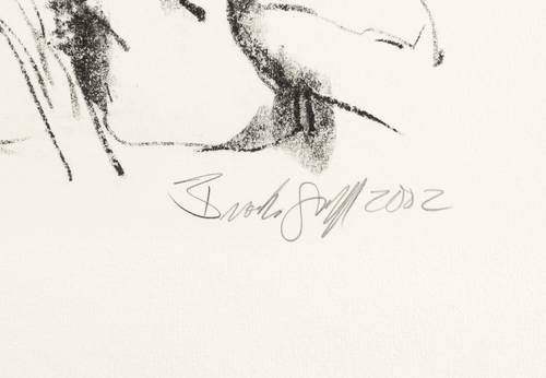 2002. Lithografie / Kreidelithografie, in Schwarz, auf glattem hellchamois Karton. – Originale Künstlergrafik, von Janet Brooks-Gerloff. – Probedruck. – 26,8 x 34,5 cm (Darstellung / Druckbild), 40 x 54 cm (Blatt).