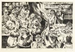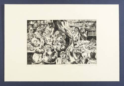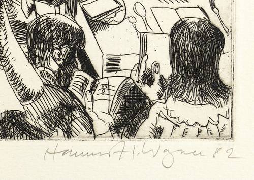 1982. Radierung / Strichätzung, in Schwarz, auf gehämmertem Maschinenbütten. – Originale Künstlergrafik, von Hannes H. Wagner. – Auflage Exemplar Nr. 13/50. – 18,0 x 27,6 cm (Darstellung / Platte), 31 x 45 cm (Blatt).