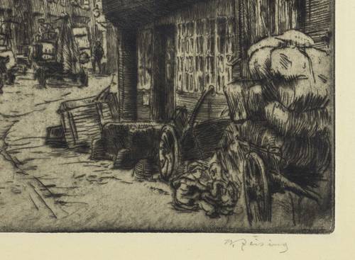 Walter Zeising (1876 Leipzig – 1933 Dresden). Eigentlich Walter Ernst Zeising, manchmal Walther Zeising. Deutscher Zeichner und Radierkünstler. Sohn des Holzstechers Franz Emil Zeising. 1892-97 Schüler der Leipziger Kunstgewerbeschule. Studium an der Münchner Akademie bei Gabriel von Hackl und an der Dresdner Kunstakademie bei Carl Bantzer und Gotthard Kuehl. 1906–10 Gewinn des großen Reisestipendiums der Akademie Dresden. Vierjähriger Aufenthalt in Frankreich (Paris, Bretagne). Seit 1910 in Dresden ansässig. 1921 Berufung zum Ausstellungsgrafiker der Leipziger Messe. Begann mit Lithografie, versuchte sich in Holzschnitt und Kupferstich. Zeising widmete sich dann aber vor allem der Radierung, die er zu einer gewissen Höhe führte. Beeinflußt von Eugène Béjot und Gustave Leheutre pflegte er einen feinen duftig-impressionistischen Radierstil. So entstanden geschätzte Stadtansichten aus Dresden, Hamburg, Leipzig und Paris.
