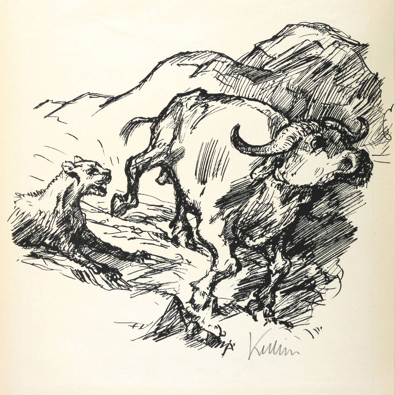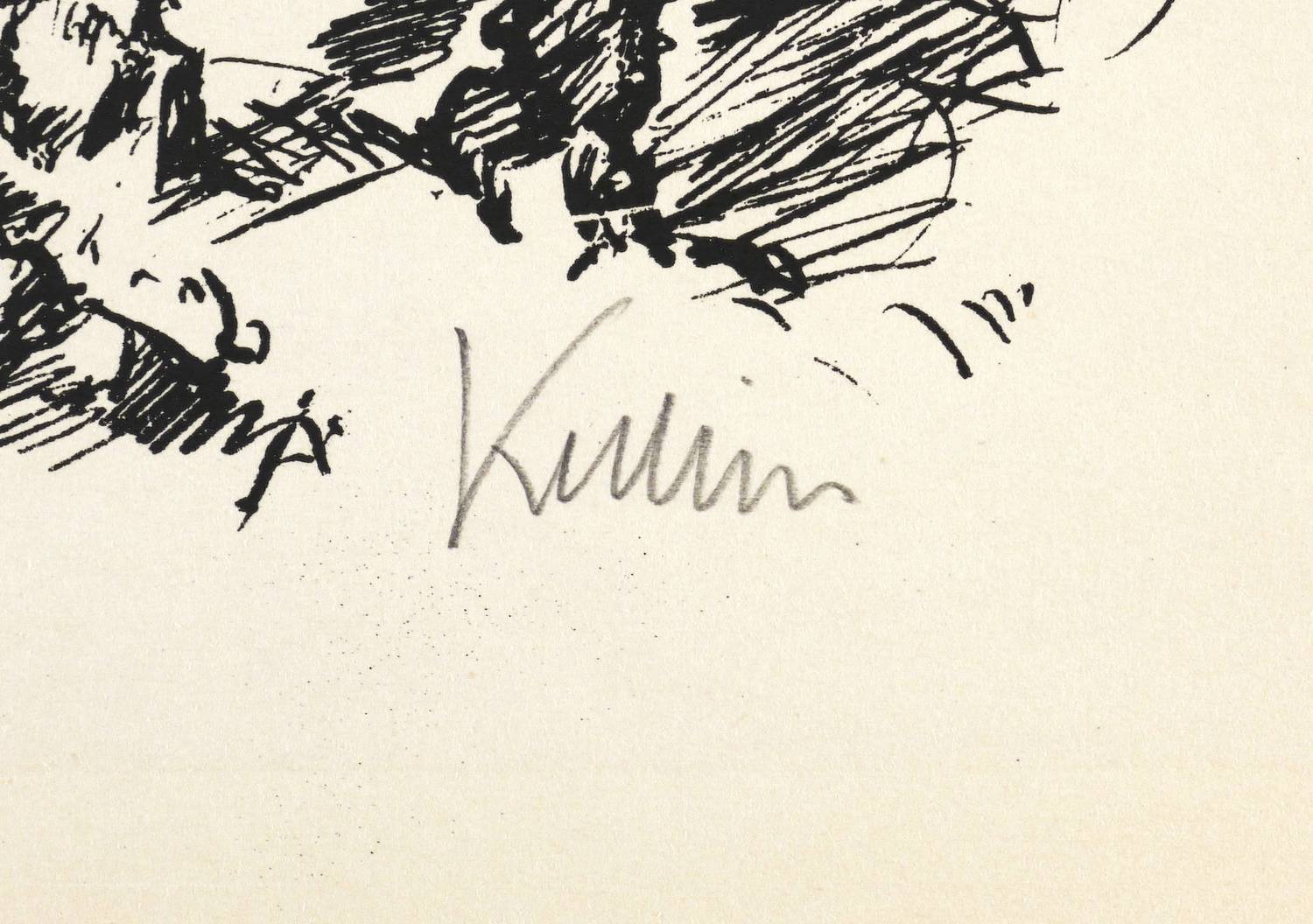 Raabe 175 a. – Aus: Meistergraphik unserer Zeit. Acht Blätter Originalgraphik deutscher Künstler (Berlin: Deutsche Buch-Gemeinschaft 1935). – Rechts unten in Bleistift signiert: ″Kubin″. – Sehr gut erhaltenes Exemplar. Original im Passepartout montiert. Sehr guter Zustand.