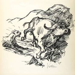 Alfred Kubin (1877 Leitmeritz - 1959 Zwickledt). Eigentlich Alfred Leopold Isidor Kubin. Österreichischer Grafiker und Illustrator. Ausbildung zum Fotografen bei einem Onkel in Klagenfurt. Frühe Beeinflussung durch den metaphysischen Pessimismus Artur Schopenhauers. 1898/99 der Besuch an der Königlichen Akademie in München bei Nikolaus Gysis, daneben andere private Zeichenschulen (z.B. bei Ludwig Schmidt-Reutte). 1899 inspiriert ihn Max Klingers Radierzyklus 'Paraphrase über den Fund eines Handschuhs' zu seiner ersten großen Schaffensphase bis 1903. Bekanntschaft mit Bruno Cassirer. 1909 Entstehung des phantastischen Romans 'Die andere Seite' mit eigenen Illustrationen. 1911 Mitglied der Künstlergruppe "Blauer Reiter". Er illustriert in seinem Leben ca. 60 Bücher, u.a. Dostojewski und Poe. Der frühe Tod der Mutter und die Spannungen mit dem Vater führten zu seelischen Krisen und andauernder Melancholie. Das Geheimnisvoll-Imaginative, das Unheimliche und Alptraumhafte sind typisch für sein Werk und erinnern an Goya und Redon.
