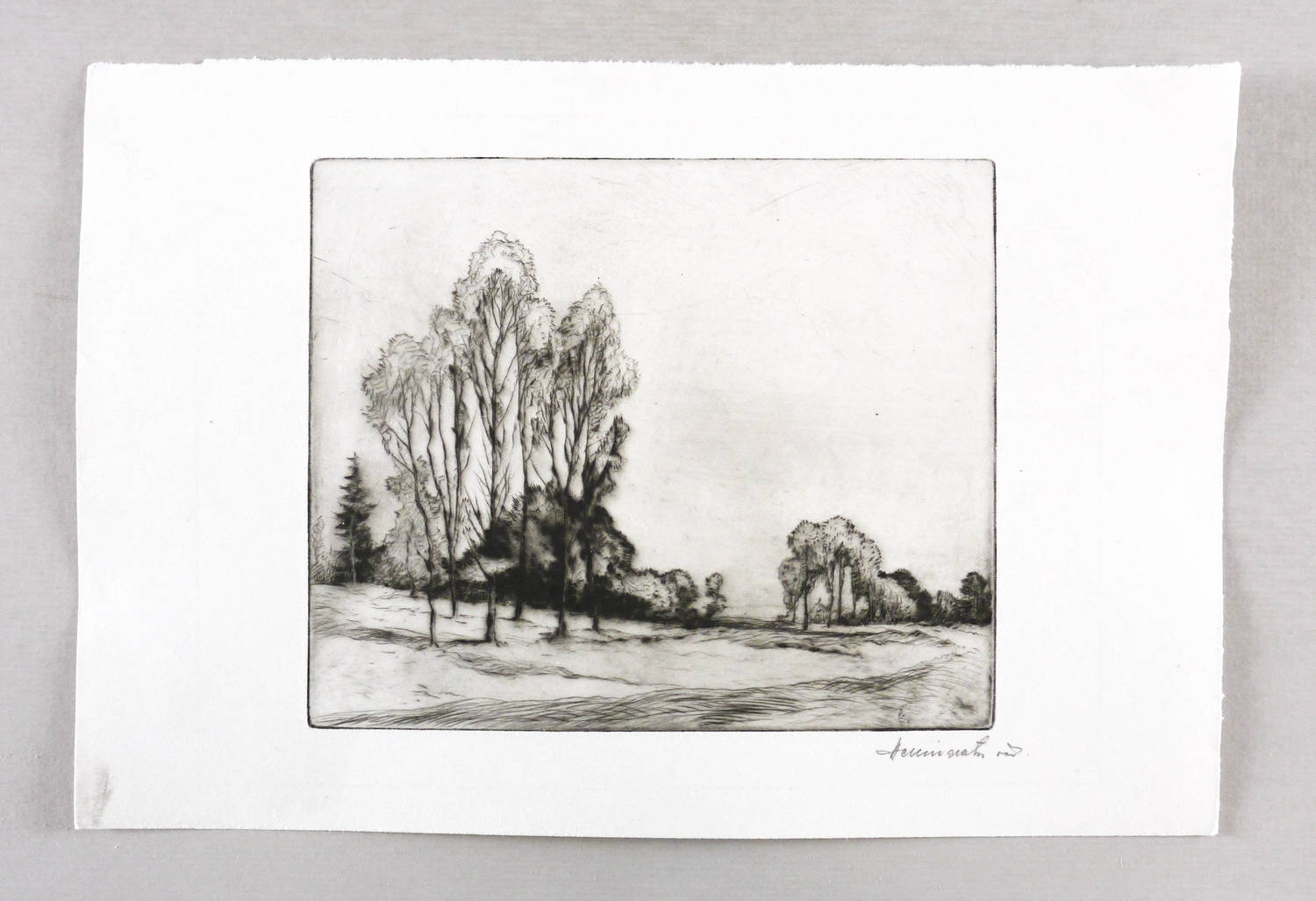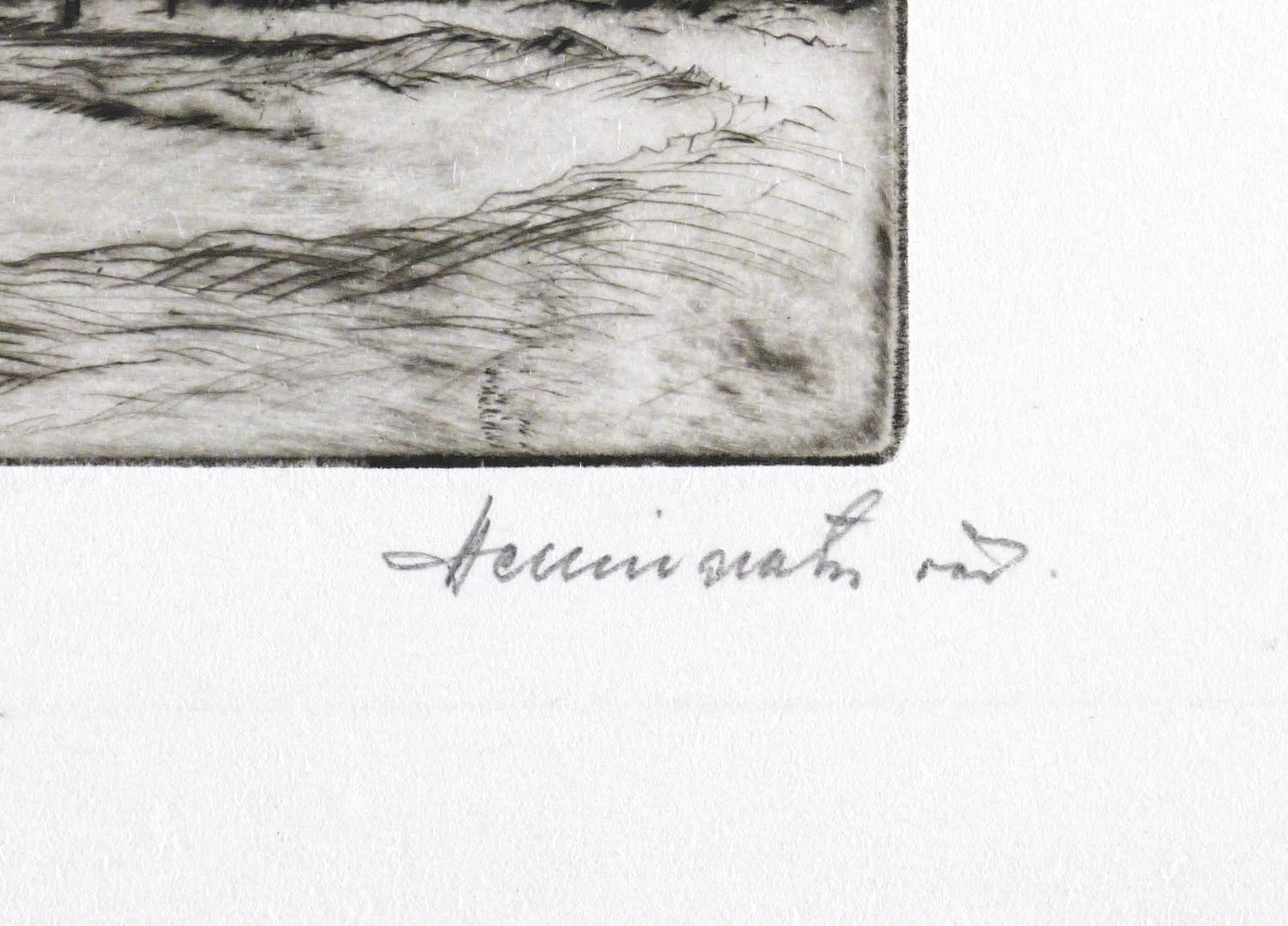 Um 1910. Radierung / Strichätzung & Kaltnadel, in Schwarz, mit Plattenton, auf hellchamois Velin. – Originale Künstlergrafik, von Fritz von Hellingrath. – 14,9 x 18,0 cm (Darstellung / Platte), 20 x 30 cm (Blatt).