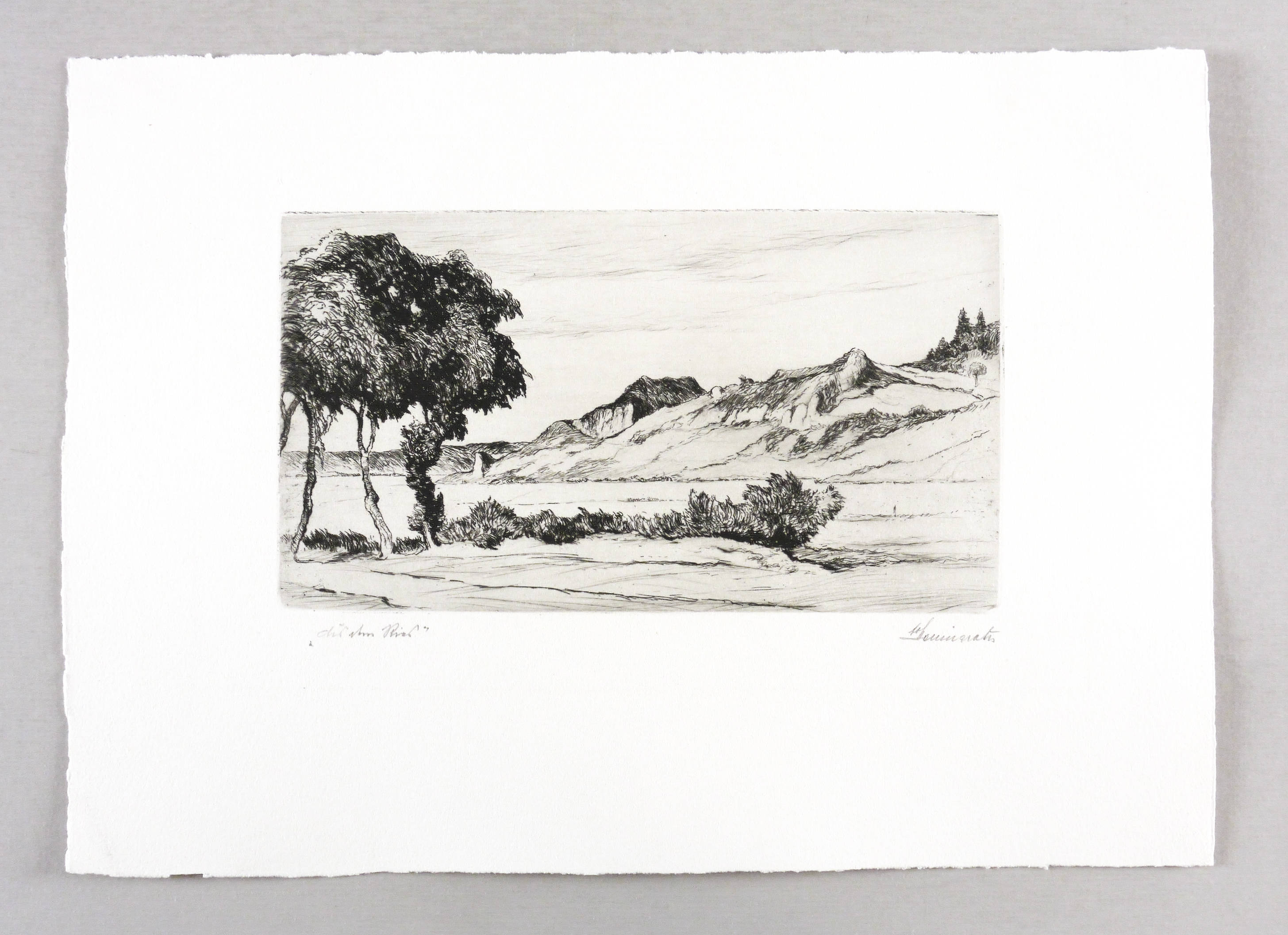 Um 1910. Radierung / Strichätzung & Kaltnadel, in Schwarz, mit Plattenton, auf hellchamois Kupferdruck. – Originale Künstlergrafik, von Fritz von Hellingrath. – 13,1 x 23,4 cm (Darstellung / Platte), 27 x 38 cm (Blatt).