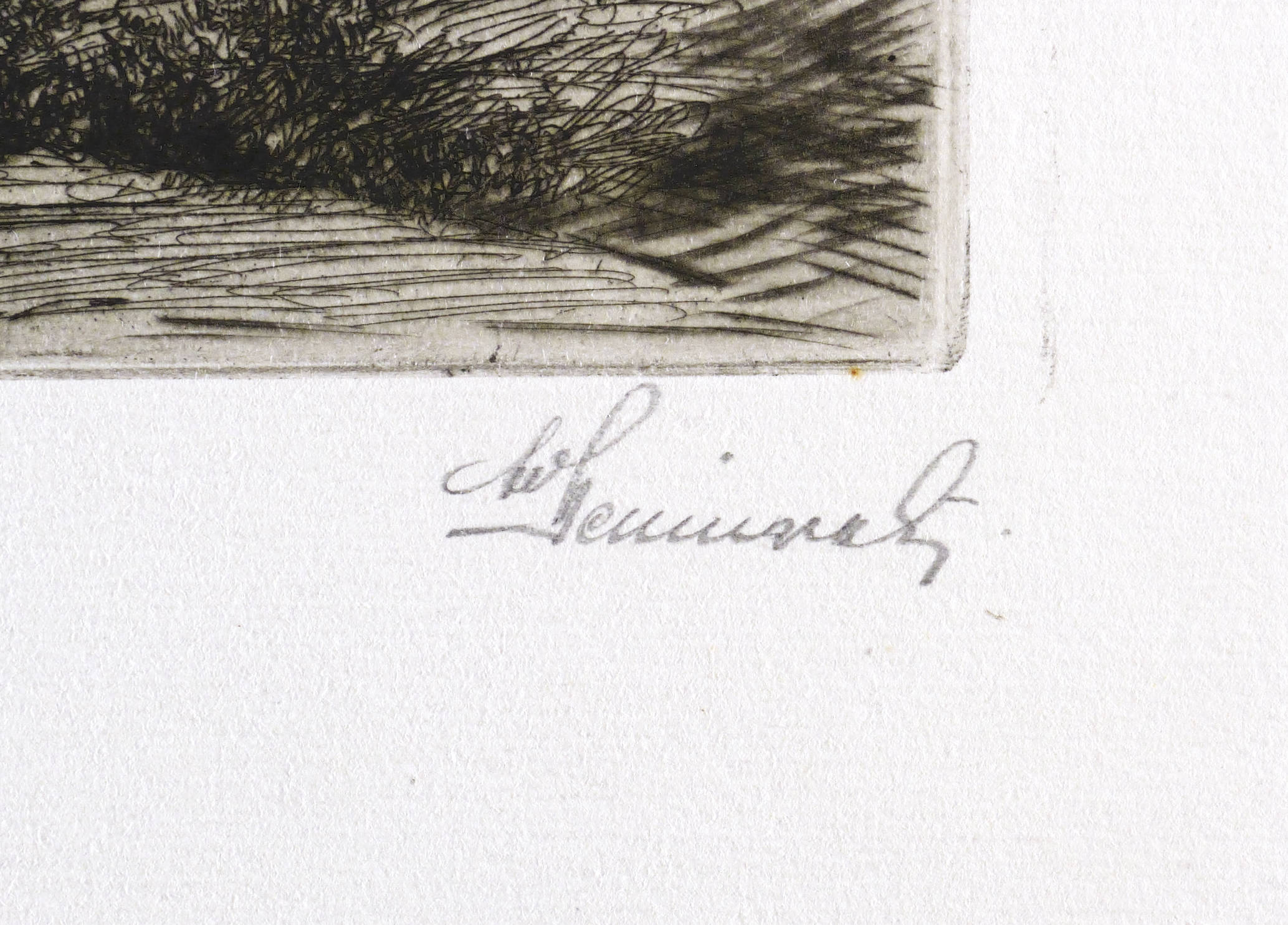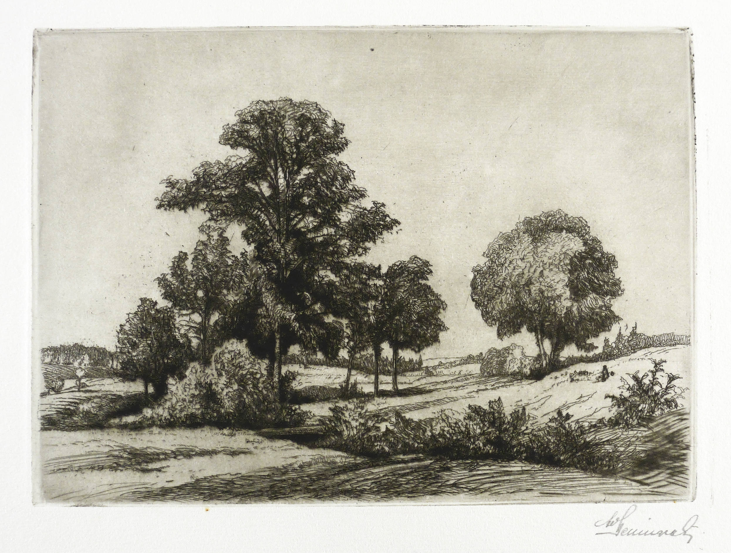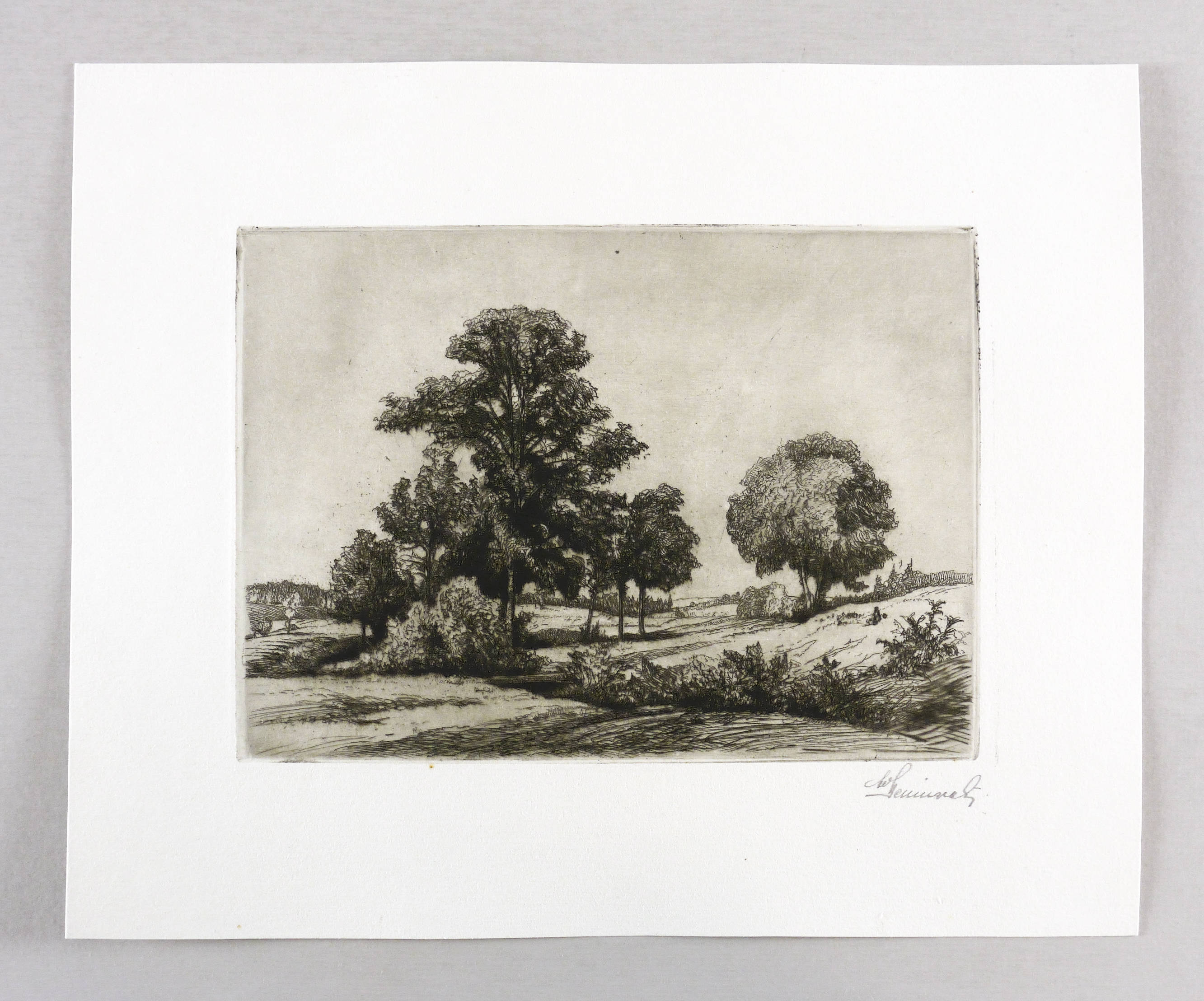 Um 1910. Radierung / Strichätzung & Kaltnadel, in Schwarz, mit Plattenton, auf hellchamois Kupferdruck. – Originale Künstlergrafik, von Fritz von Hellingrath. – 17,1 x 23,6 cm (Darstellung / Platte), 28 x 35 cm (Blatt).