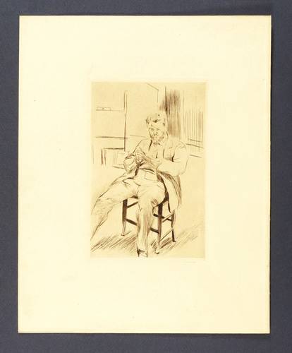 1911. Radierung / Kaltnadel, mit Plattenton, in Schwarzbraun, auf gelblichem Büttenpapier. – Originale Künstlergrafik, von Max Slevogt. – 18,0 x 12,2 cm (Darstellung / Platte), 31 x 25 cm (Blatt).